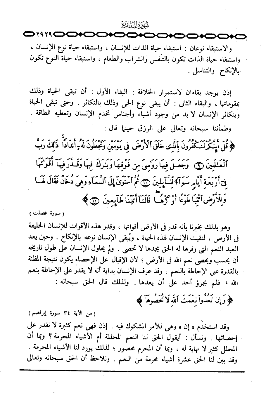 إذن يوجد بقاءان لاستمرار الخلافة: البقاء الأول: أن تبقى الحياة وذلك بمقوماتها، والبقاء الثاني: أن يبقى نوع الحي وذلك بالتكاثر. وحتى تبقى الحياة ويتكاثر الإنسان لا بد من وجود أشياء وأجناس تخدم الإنسان وتعطيه الطاقة.