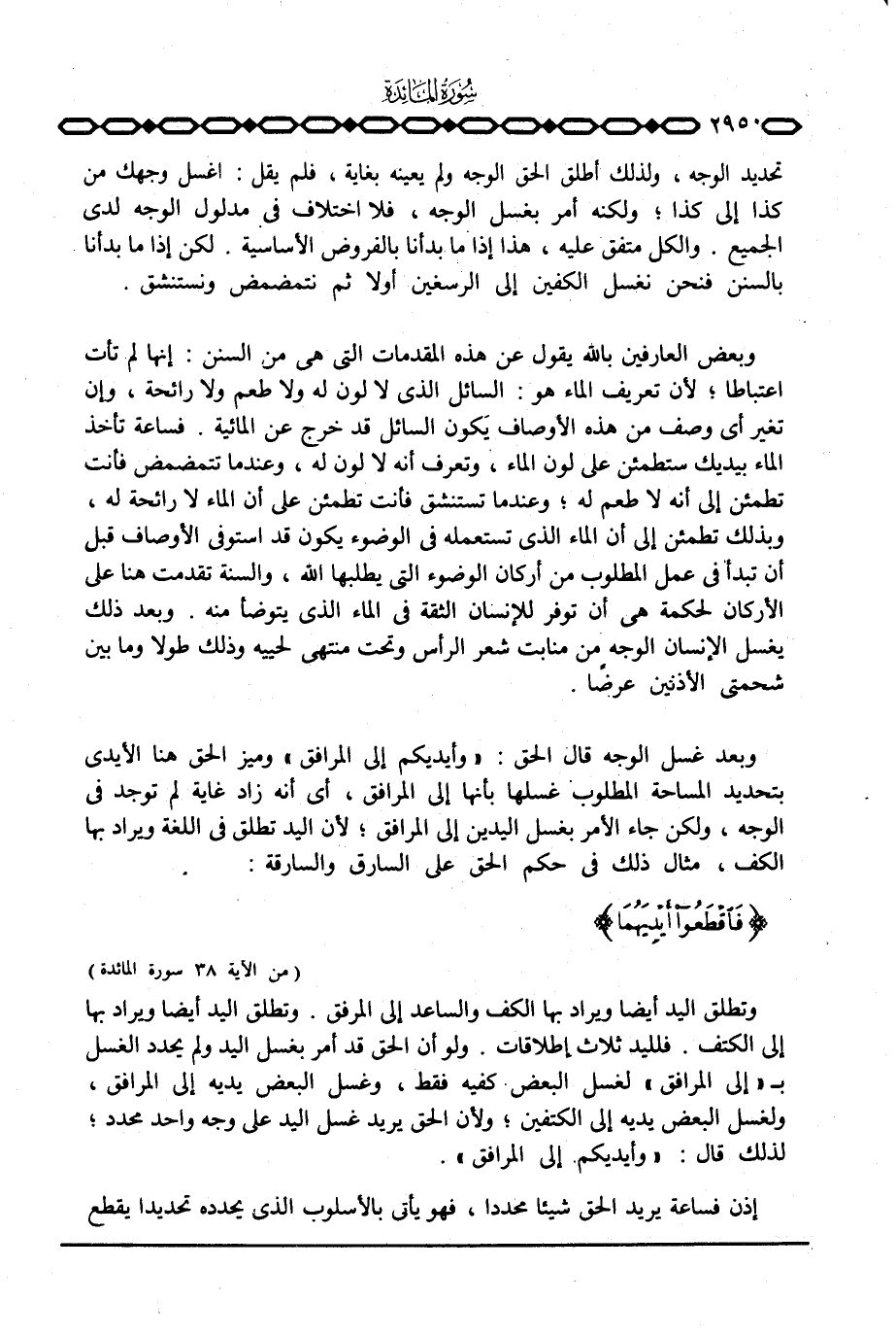 تحديد الوجه، ولذلك أطلق الحق الوجه ولم يعينه بغاية، فلم يقل: اغسل وجهك من كذا إلى كذا؛ ولكنه أمر بغسل الوجه، فلا اختلاف في مدلول الوجه لدى الجميع. والكل متفق عليه، هذا إذا ما بدأنا بالفروض الأساسية. لكن إذا ما بدأنا بالسنن فنحن نغسل الكفين إلى الرسغين أولا ثم نتمضمض ونستنشق.