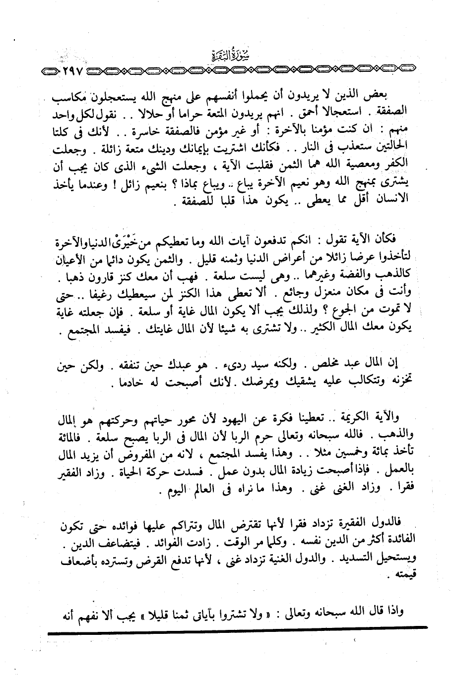 وإذا قال الله سبحانه وتعالى: {وَلاَ تَشْتَرُواْ بِآيَاتِي ثَمَناً قَلِيلاً} يجب ألا نفهم أنه