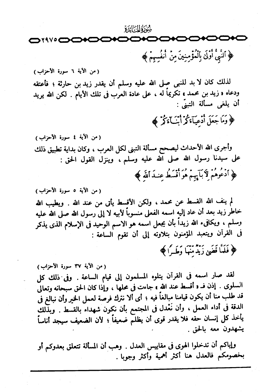 لم ينف الله القسط عن محمد، ولكن الأقسط يأتي من عند الله. ويطيب الله خاطر زيد بعد أن عاد إليه اسمه الفعلي منسوباً لأبيه لا إلى رسول الله صَلَّى اللَّهُ عَلَيْهِ وَسَلَّم َ، ويكافئ الله زيداً بأن يجعل اسمه هو الاسم الوحيد في الإسلام الذي يذكر في القرآن ويتعبد المؤمنون بتلاوته إلى أن تقوم الساعة: {فَلَمَّا قضى زَيْدٌ مِّنْهَا وَطَراً} [الأحزاب: 37]