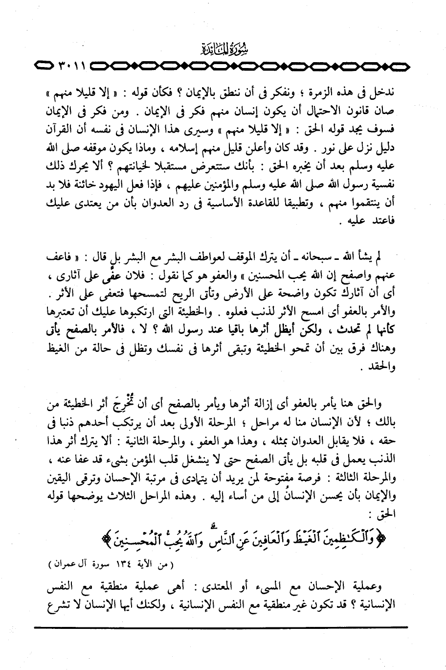 وهذه المراحل الثلاث يوضحها قوله الحق: {والكاظمين الغيظ والعافين عَنِ الناس والله يُحِبُّ المحسنين} [آل عمران: 134]