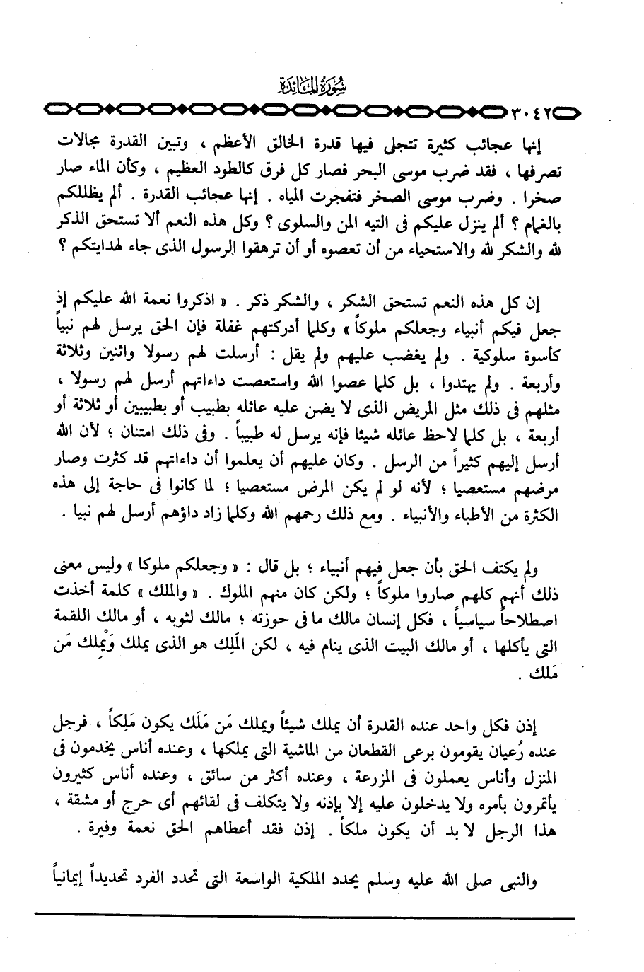 والنبي صَلَّى اللَّهُ عَلَيْهِ وَسَلَّم َ يحدد الملكية الواسعة التي تحدد الفرد تحديداً إيمانياً