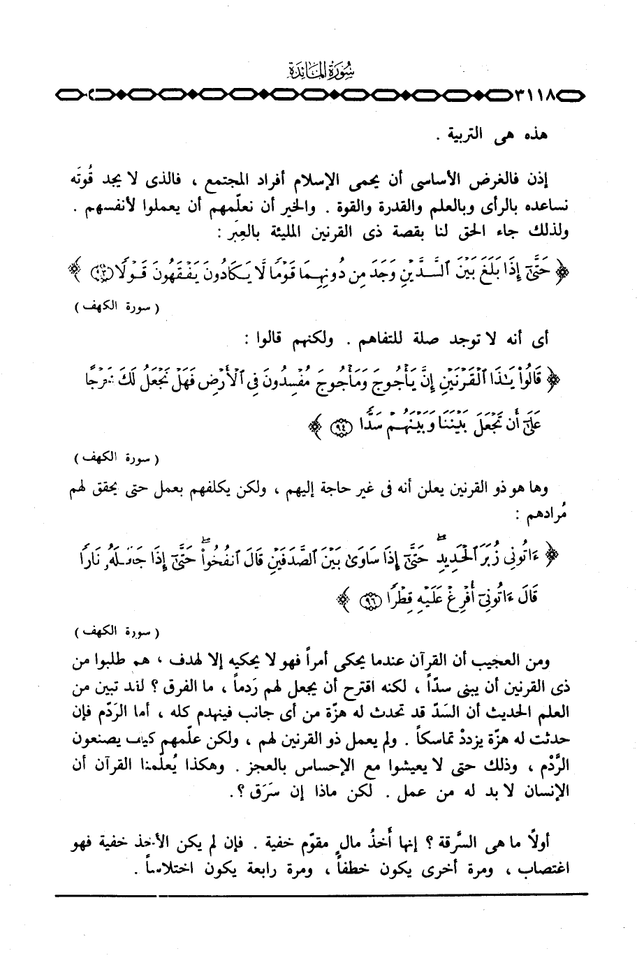 ومن العجيب أن القرآن عندما يحكي أمراً فهو لا يحكيه إلا لهدف، هم طلبوا من ذي القرنين أن يبني سدّاً، لكنه اقترح أن يجعل لهم رَدماً، ما الفرق؟ لقد تبين من العلم الحديث أن السَدّ قد تحدث له هزّة من أي جانب فينهدم كله، أما الرّدْم فإن حدثت له هزّة يزددْ تماسكاً. ولم يعمل ذو القرنين لهم، ولكن علّمهم كيف يصنعون الرَّدْم، وذلك حتى لا يعيشوا مع الإحساس بالعجز. وهكذا يُعلّمنا القرآن أن الإنسان لا بد له من عمل. لكن ماذا إن سَرَق؟ .