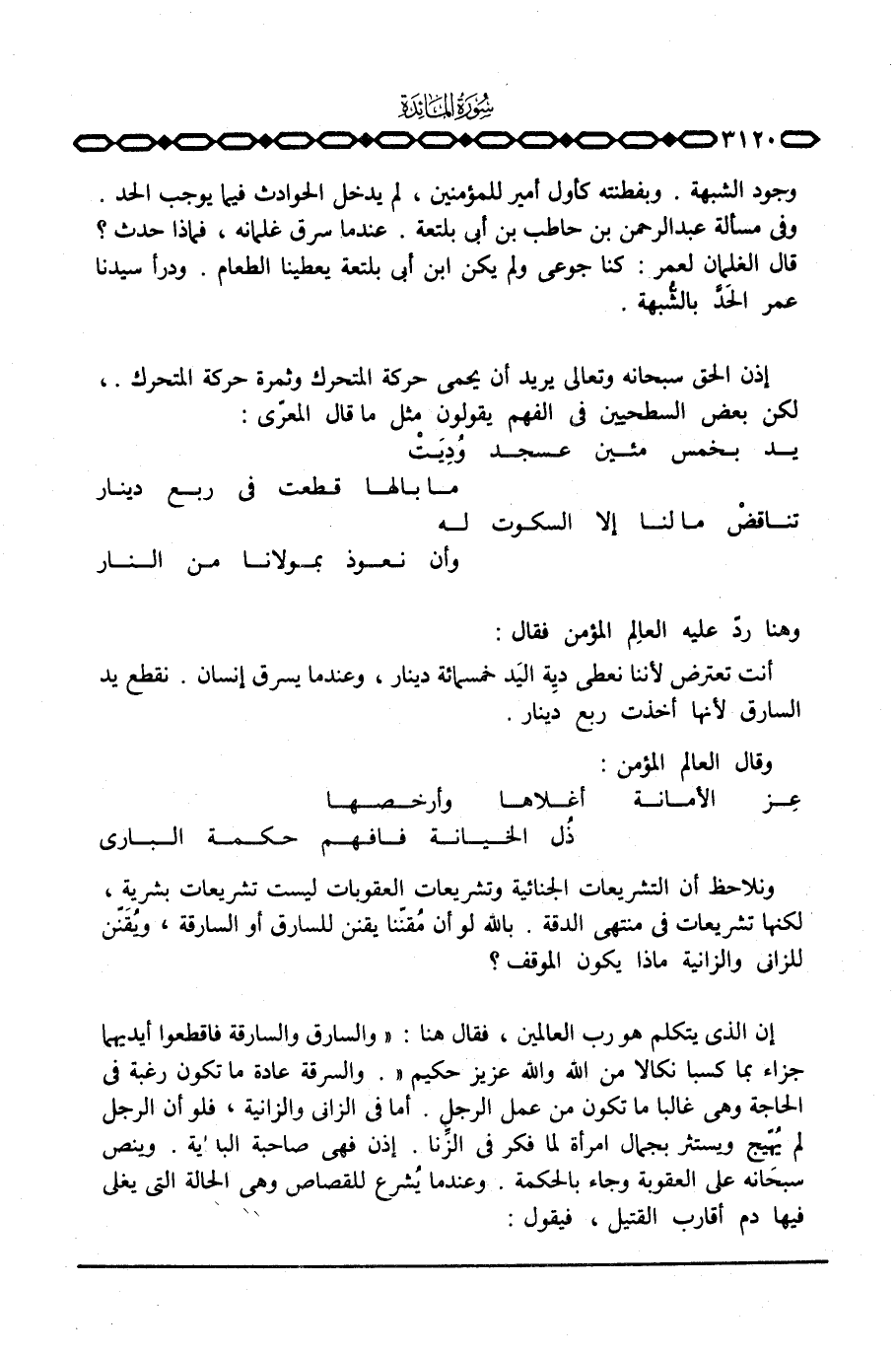 أنت تعترض لأننا نعطي ديِة اليَد خمسمائة دينار، وعندما يسرق إنسان. نقطع يد السارق لأنها أخذت ربع دينار.