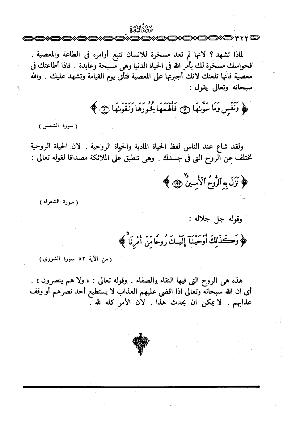 لماذا تشهد؟ لأنها لم تعد مسخرة للإنسان تتبع أوامره في الطاعة والمعصية. فحواسك مسخرة لك بأمر الله في الحياة الدنيا وهي مسبحة وعابدة. فإذا أطاعتك في معصية فإنها تلعنك لأنك أجبرتها على المعصية فتأتي يوم القيامة وتشهد عليك. والله سبحانه وتعالى يقول: {وَنَفْسٍ وَمَا سَوَّاهَا فَأَلْهَمَهَا فُجُورَهَا وَتَقْوَاهَا} [الشمس: 7 - 8]