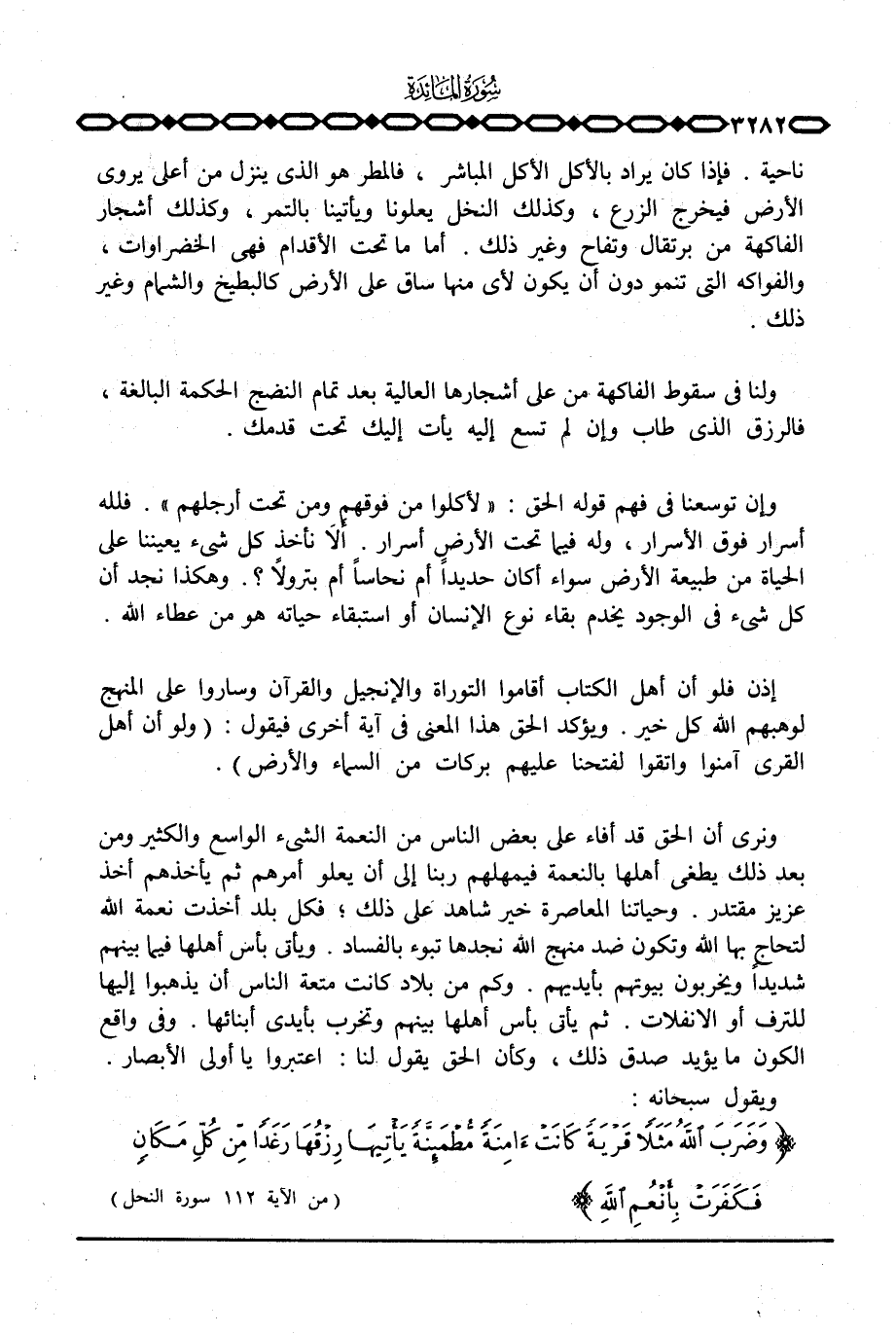 إذن فلو أن أهل الكتاب أقاموا التوارة والإنجيل والقرآن وساروا على المنهج لوهبهم الله كل خير. ويؤكدالحق هذا المعنى في آية أخرى فيقول: {وَلَوْ أَنَّ أَهْلَ القرى آمَنُواْ واتقوا لَفَتَحْنَا عَلَيْهِمْ بَرَكَاتٍ مِّنَ السمآء والأرض} .
