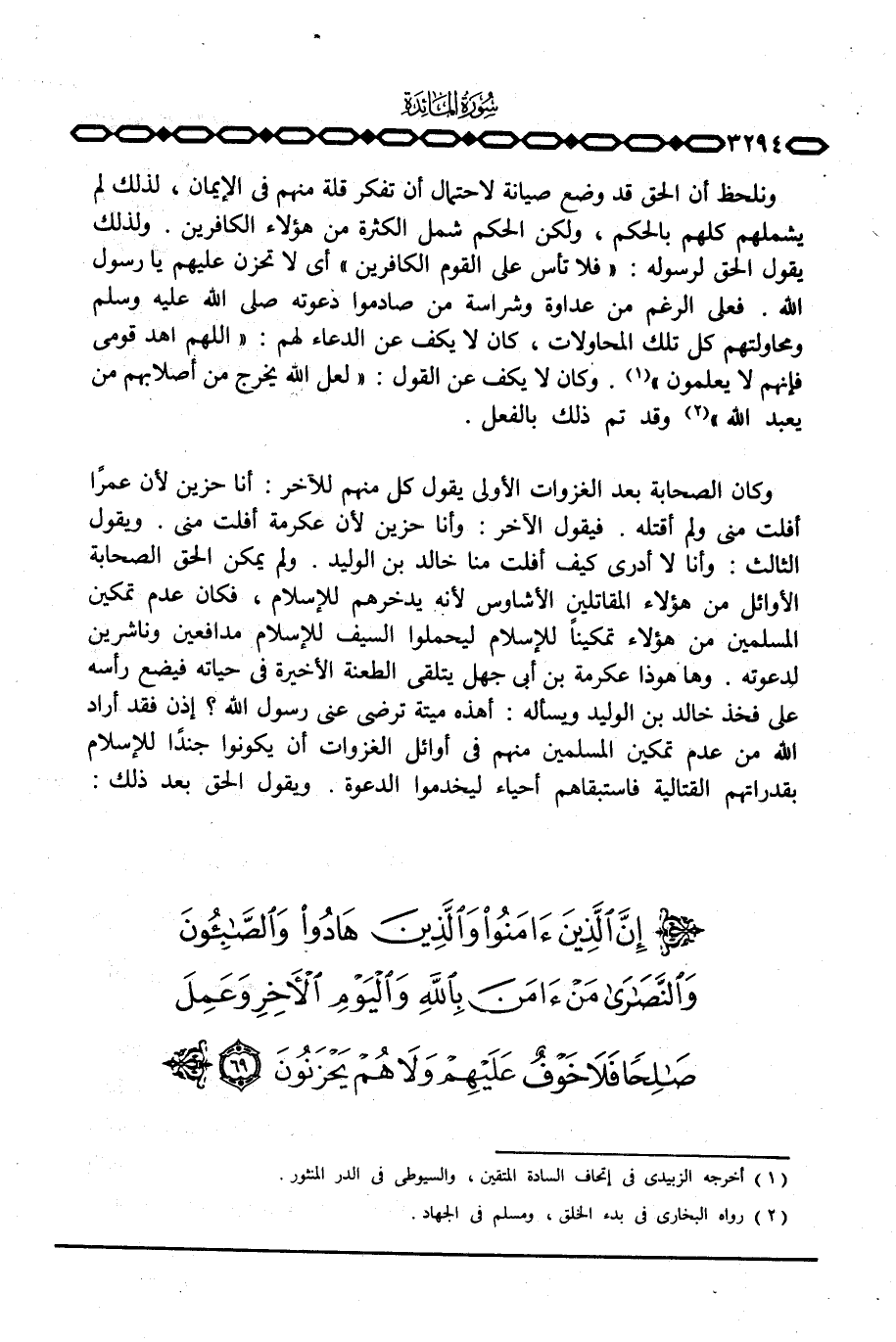 وكان الصحابة بعد الغزوات الأولى يقول كل منهم للآخر: أنا حزين لأن عمراً أفلت مني ولم أقتله. فيقول الآخر: وأنا حزين لأن عكرمة أفلت مني. ويقول الثالث: وأنا لا أدري كيف أفلت منا خالد بن الوليد. ولم يمكن الحق الصحابة الأوائل من هؤلاء المقاتلين الأشاوس لأنه يدخرهم للإسلام ليحملوا السيف للإسلام مدافعين وناشرين لدعوته. وها هوذا عكرمة بن أبي جهل يتلقى الطعنة الأخيرة في حياته فيضع رأسه على فخذ خالد بن الوليد ويسأله: أهذه ميتة ترضى عني رسول الله؟ إذن فقد أراد الله من عدم تمكين المسلمين منهم في أوائل الغزوات أن يكونوا جنداً للإسلام بقدراتهم القتالية فاستبقاهم أحياء ليخدموا الدعوة. ويقول الحق بعد ذلك: {إِنَّ الذين آمَنُواْ ... }