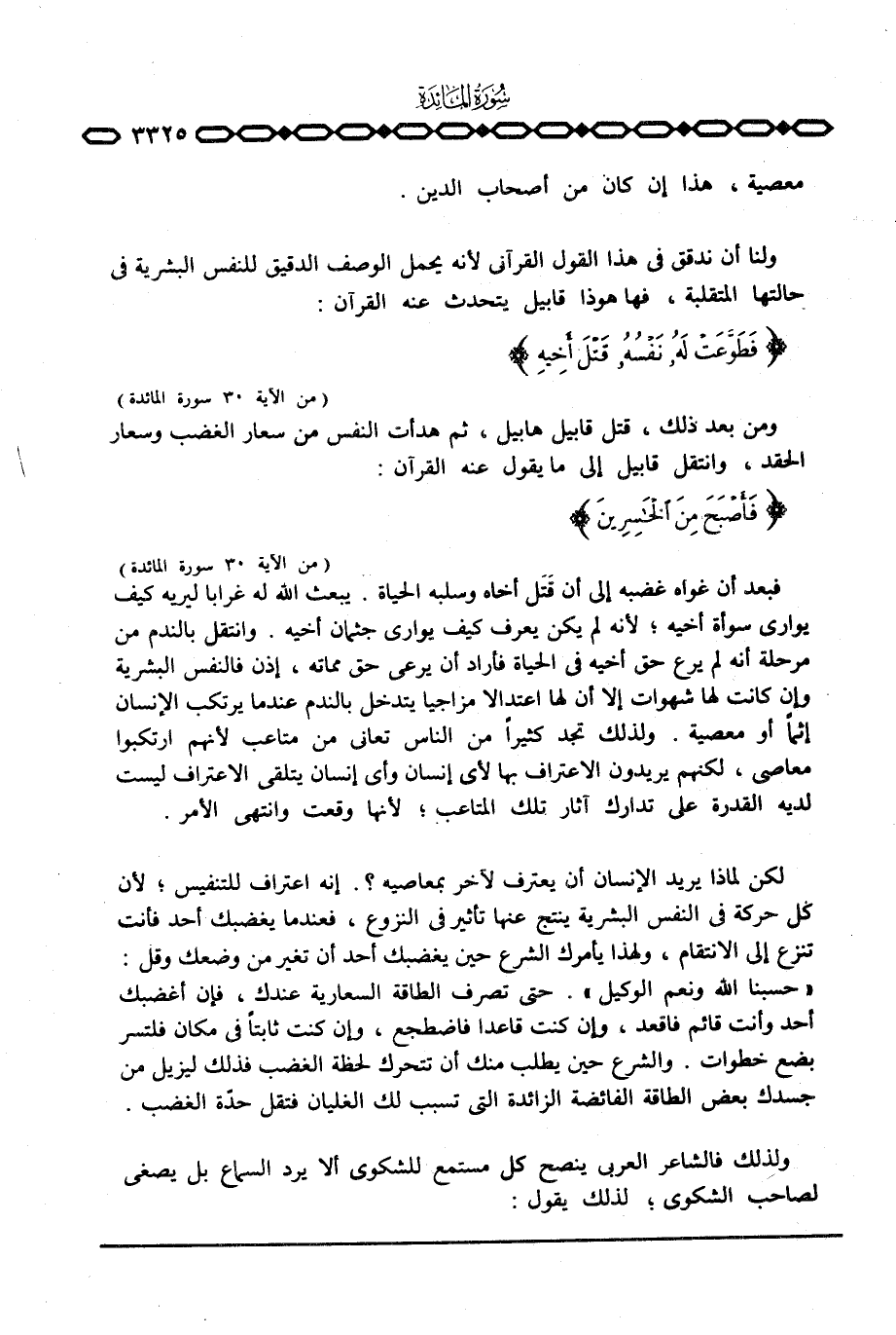 ولنا أن ندقق في هذا القول القرآني لأنه يحمل الوصف الدقيق للنفس البشرية في حالتها المتقلبة، فها هوذا قابيل يتحدث عنه القرآن: {فَطَوَّعَتْ لَهُ نَفْسُهُ قَتْلَ أَخِيهِ} [المائدة: 30] .