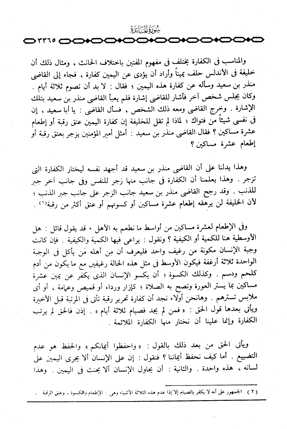 وهذا يدلنا على أن القاضي منذر بن سعيد قد أجهد نفسه ليختار الكفارة التي تزجر. وهذا يعلمنا أن الكفارة في جانب منها زجر للنفس وفي جانب آخر جبر للذنب. وقد رجح القاضي منذر بن سعيد جانب الزجر على جانب جبر الذنب؛ لأن الخليفة لن يرهقه إطعام عشرة مساكين أو كسوتهم أو عتق أكثر من رقبة.