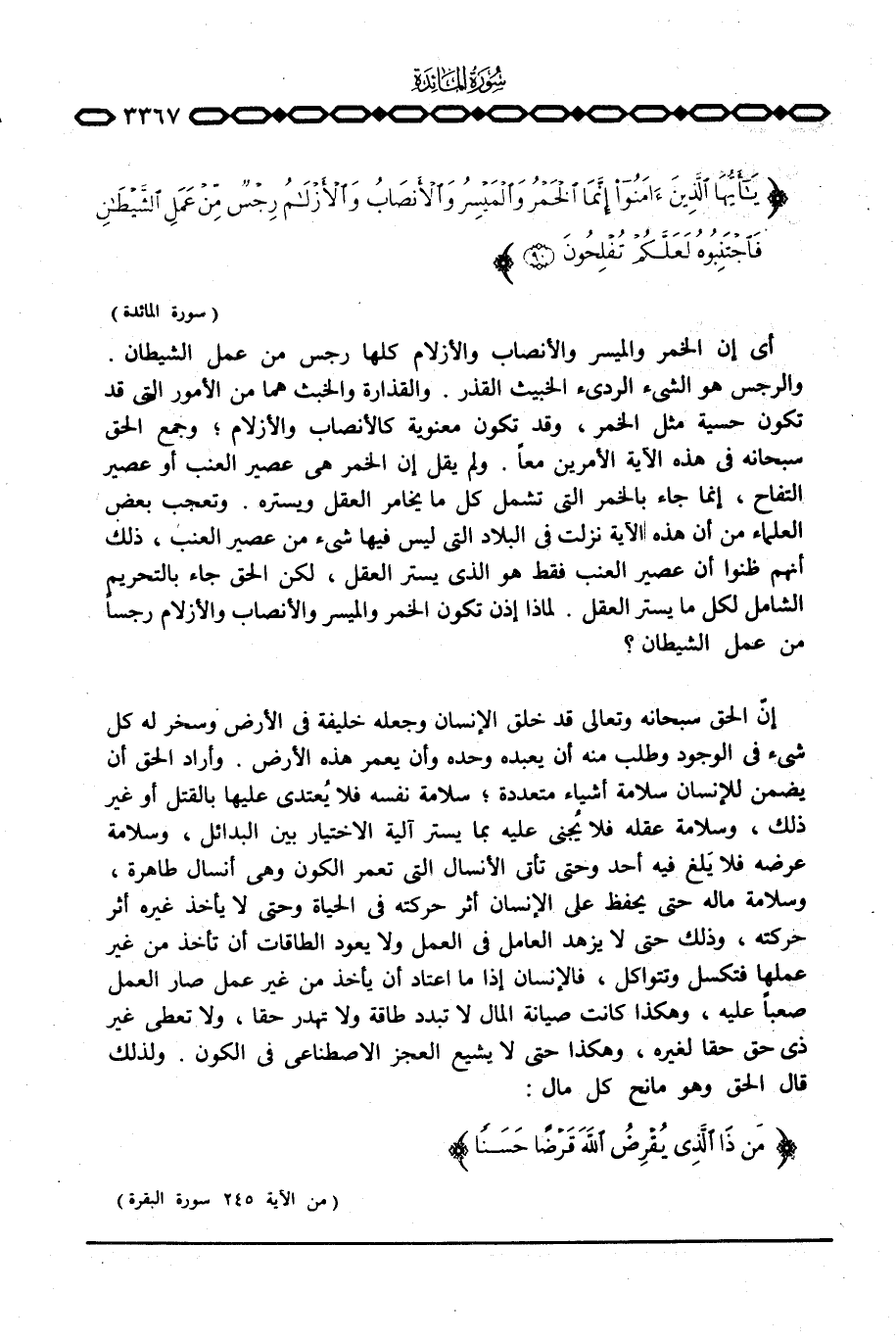 {ياأيها الذين آمَنُواْ إِنَّمَا الخمر والميسر والأنصاب والأزلام رِجْسٌ مِّنْ عَمَلِ الشيطان فاجتنبوه لَعَلَّكُمْ تُفْلِحُونَ} [المائدة: 90] .