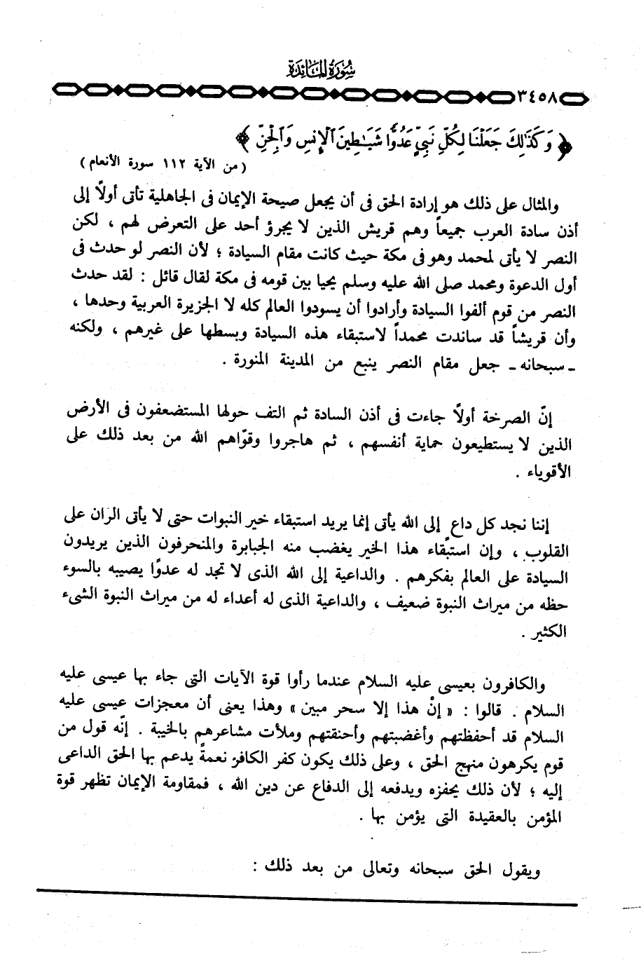 إننا نجد كل داع إلى الله يأتي إنما يريد استبقاء خير النبوات حتى لا يأتي الران على القلوب، وإن استبقاء هذا الخير يغضب منه الجبابرة والمنحرفون الذين يريدون السيادة على العالم بفكرهم. والداعية إلى الله الذي لا تجد له عدواً يصيبه بالسوء حظه من ميراث النبوة ضعيف، والداعية الذي له أعداء له من ميراث النبوة الشيء الكثير.
