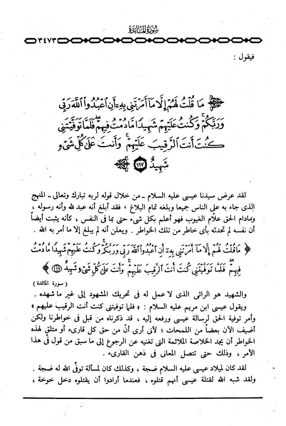 {مَا قُلْتُ لَهُمْ إِلاَّ مَآ أَمَرْتَنِي بِهِ أَنِ اعبدوا الله رَبِّي وَرَبَّكُمْ وَكُنتُ عَلَيْهِمْ شَهِيداً مَّا دُمْتُ فِيهِمْ فَلَمَّا تَوَفَّيْتَنِي كُنتَ أَنتَ الرَّقِيبَ عَلَيْهِمْ وَأَنتَ على كُلِّ شَيْءٍ شَهِيدٌ} [المائدة: 117] .