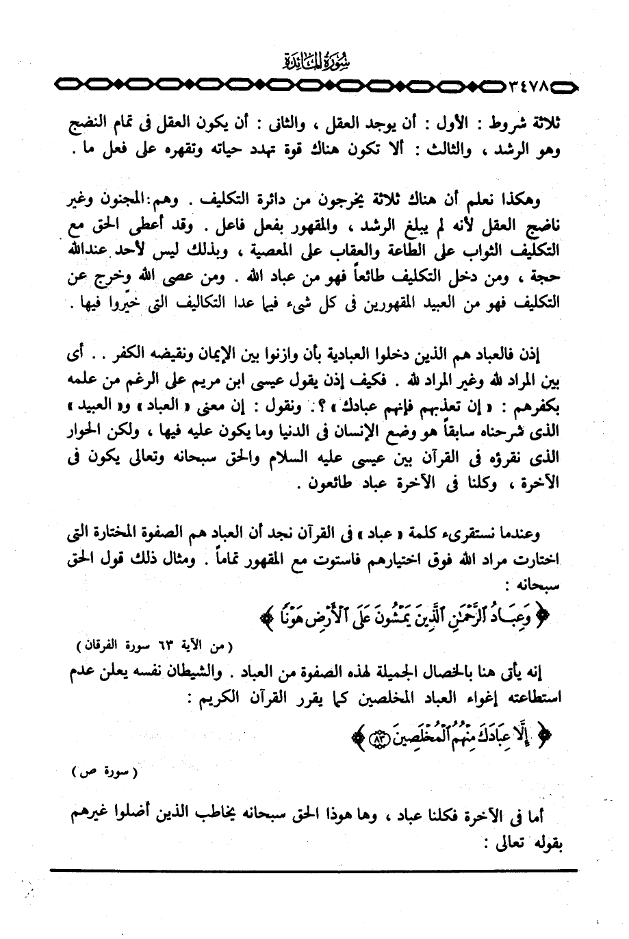 أنه يأتي هنا بالخصال الجميلة لهذه الصفوة من العباد. والشيطان نفسه يعلن عدم استطاعته إغواء العباد المخلصين كما يقرر القرآن الكريم: {إِلاَّ عِبَادَكَ مِنْهُمُ المخلصين} [ص: 83] .