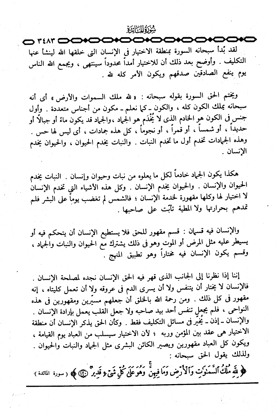 لقد بدأ سبحانه السورة بمنطقة الاختيار في الإنسان التي خلقها الله لينشأ عنها التكليف. وأوضح بعد ذلك أن للاختيار أمداً محدداً سينتهي، ويجمع الله الناس يوم ينفع الصادقين صدقهم ويكون الأمر كله لله.