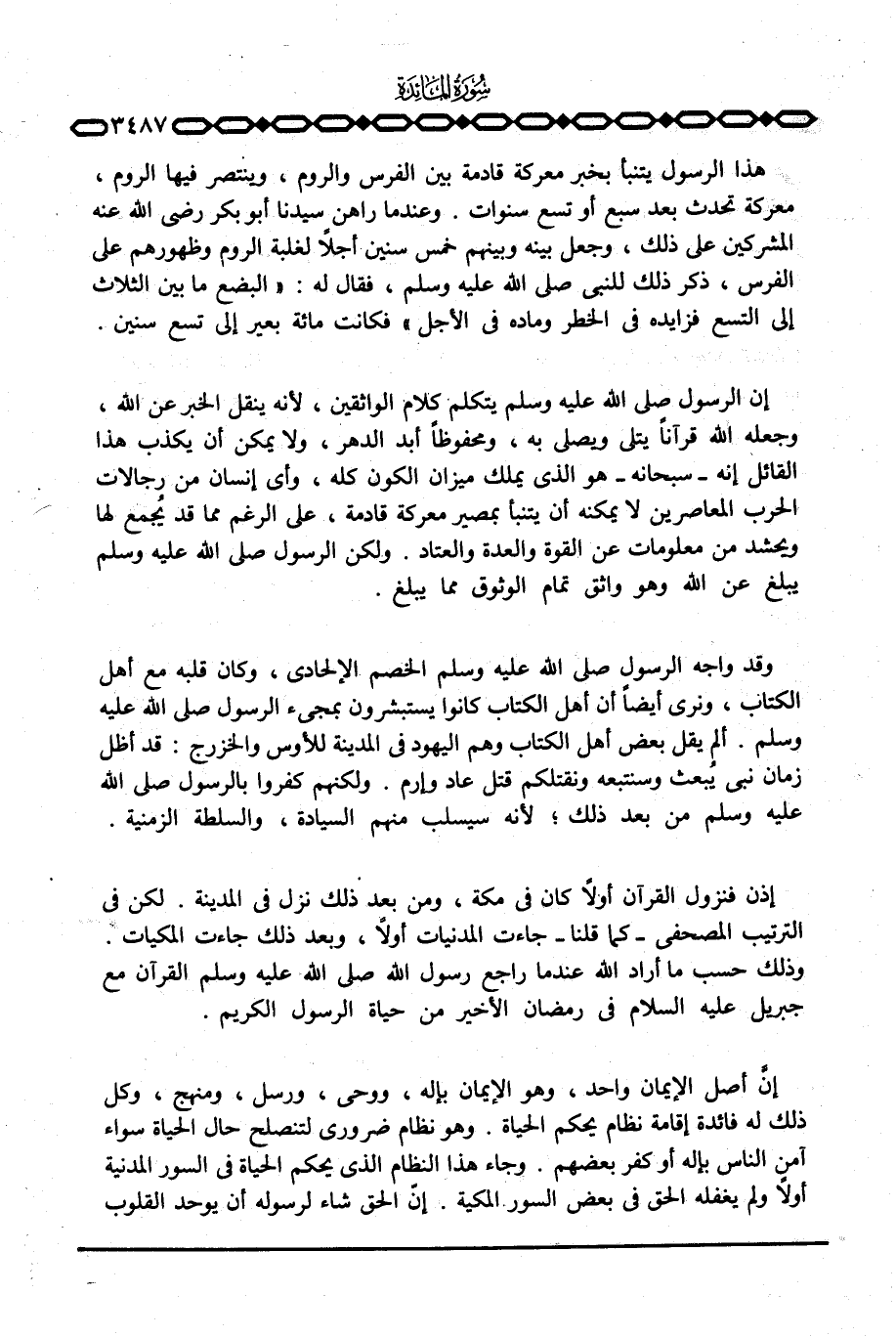 هذا الرسول يتنبأ بخبر معركة قادمة بين الفرس والروم، وينتصر فيها الروم، معركة تحدث بعد سبع أو تسع سنوات. وعندما راهن سيدنا أبو بكر رَضِيَ اللَّهُ عَنْه المشركين على ذلك، وجعل بينه وبينهم خمس سنين أجلاً لغلبة الروم وظهورهم على الفرس، ذكر ذلك للنبي صَلَّى اللَّهُ عَلَيْهِ وَسَلَّم َ، فقال له: «البضع ما بين الثلاث إلى التسع فزايده في الخطر وماده في الأجل» فكانت مائة بعير إلى تسع سنين.
