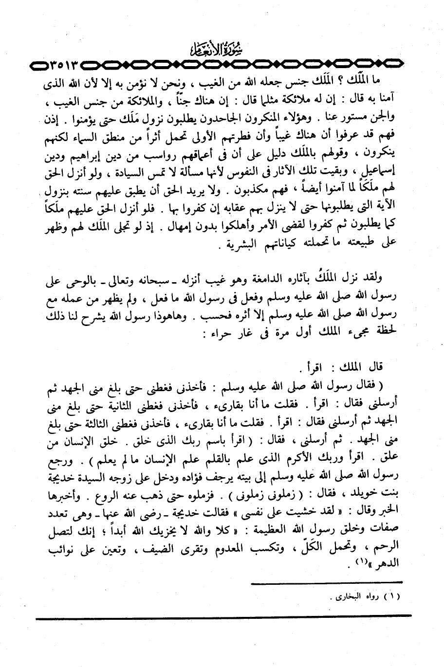 ولقد نزل الملَكُ بآثاره الدامغة وهو غيب أنزله - سبحانه وتعالى - بالوحي رسول الله صَلَّى اللَّهُ عَلَيْهِ وَسَلَّم َ وفعل في رسول الله ما فعل، ولم يظهر من عمله مع رسول الله صَلَّى اللَّهُ عَلَيْهِ وَسَلَّم َ إلا أثره فحسب. وها هوذا رسول الله يشرح لنا ذلك لحظة مجيء الملك أول مرة في غار حراء: