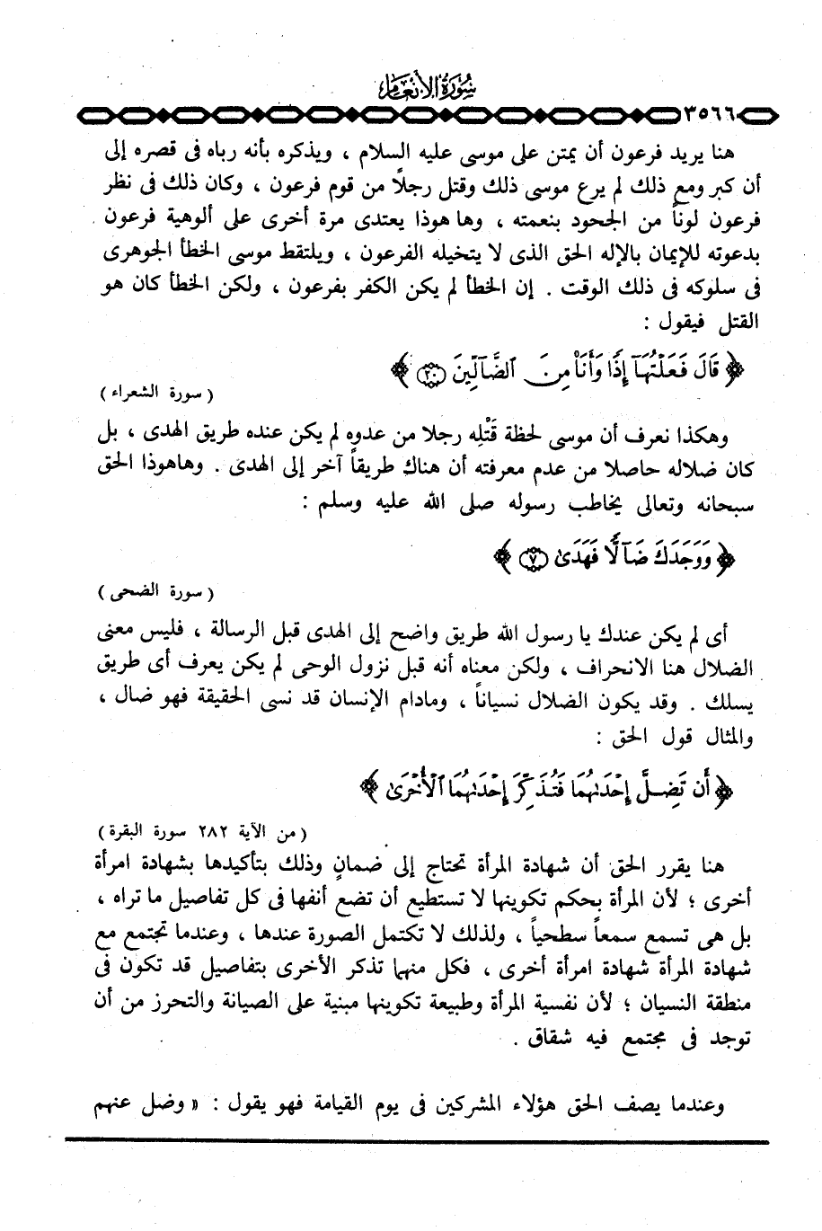 هنا يقرر الحق أن شهادة المرأة تحتاج إلى ضمان وذلك بتأكيدها بشهادة امرأة أخرى؛ لأن المرأة بحكم تكوينها لا تستطيع أن تضع أنفها في كل تفاصيل ما تراه، بل هي تسمع سمعاً سطحياً، ولذلك لا تكتمل الصورة عندها، وعندما تجتمع مع شهادة المرأة شهادة امرأة أخرى، فكل منهما تذكر الأخرى بتفاصيل قد تكون في منطقة النسيان؛ لأن نفسية المرأة وطبيعة تكوينها مبنية على الصيانة والتحرز من أن توجد في مجتمع فيه شقاق.