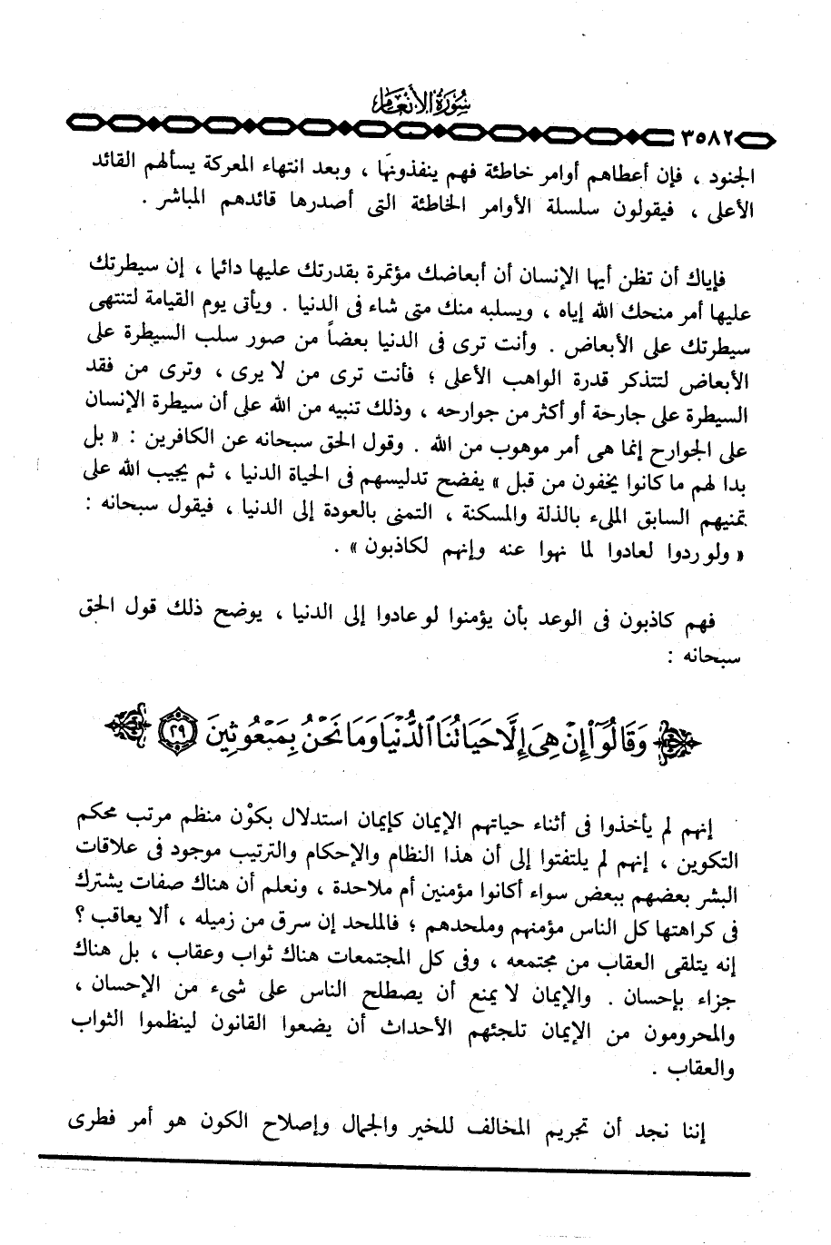 إنهم لم يأخذوا في أثناء حياتهم الإيمان كإيمان استدلال بكوْن منظم مرتب محكم التكوين، إنهم لم يلتفتوا إلى أن هذا النظام أو الإحكام والترتيب موجود في علاقات البشر بعضهم ببعض سواء أكانوا مؤمنين أم ملاحدة، ونعلم أن هناك صفات يشترك في كراهتها كل الناس مؤمنهم وملحدهم؛ فالملحد إن سرق من زميله، ألا يعاقب؟ إنه يتلقى العقاب من مجتمعه، وفي كل المجتمعات هناك ثواب وعقاب، بل هناك جزاء بإحسان. والإيمان لا يمنع أن يصطلح الناس على شيء من الإحسان، والمحرومون من الإيمان تلجئهم الأحداث أن يضعوا القانون لينظموا الثواب والعقاب.