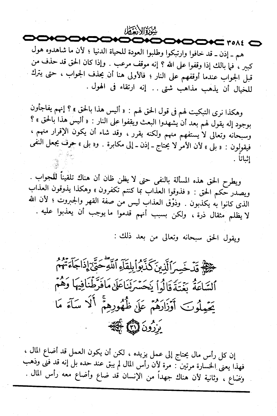 إن كل رأس مال يحتاج إلى عمل يزيده، لكن أن يكون العمل قد أضاع المال، فهذا يعني الخسارة مرتين: مرة لأن رأس المال لم يبق عند حده بل إنه قد فنى وذهب وضاع، وثانية لأن هناك جهداً من الإنسان قد ضاع وأضاع معه رأس المال.