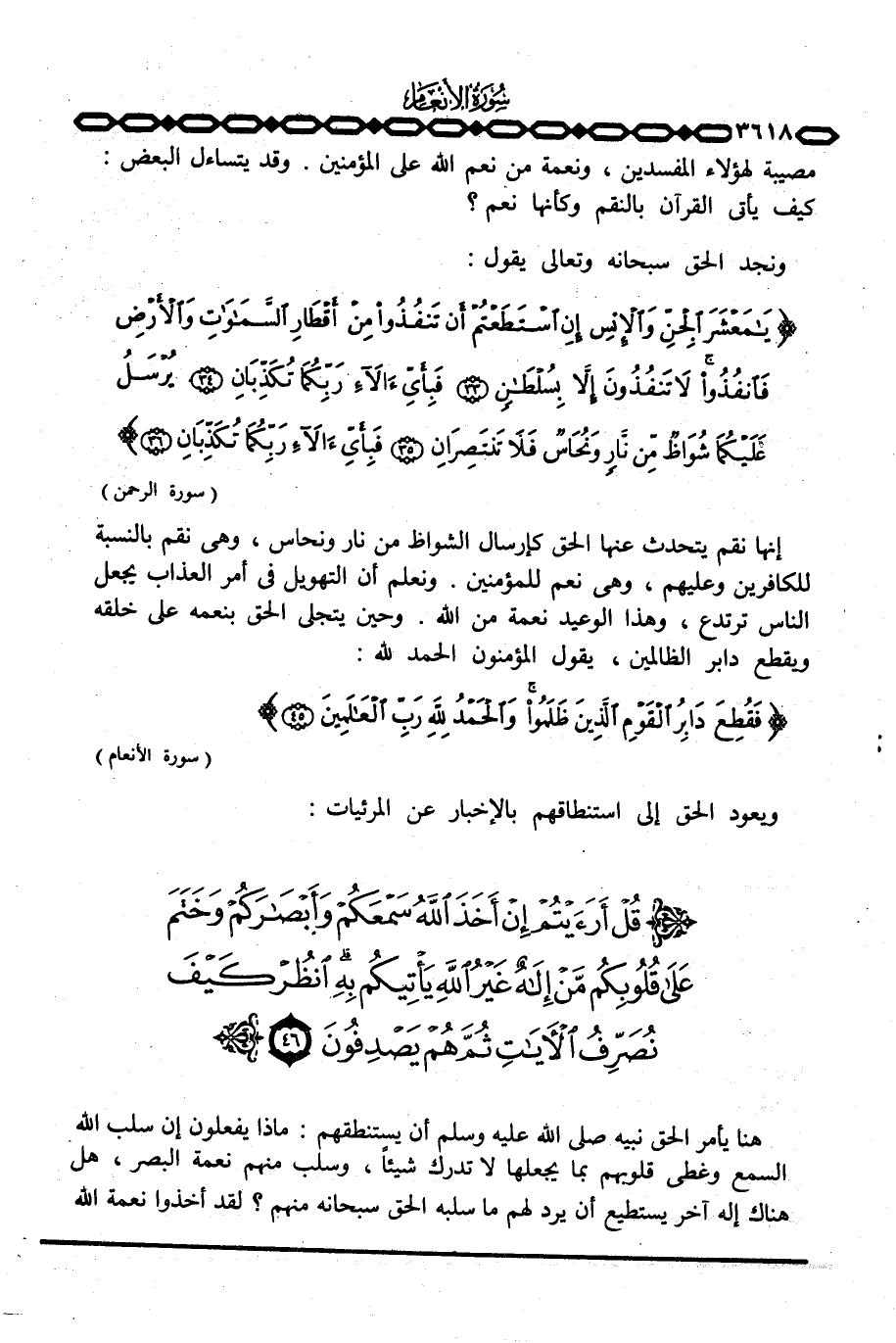 إنها نقم يتحدث عنها الحق كإرسال الشواظ من نار ونحاس، وهي نقم بالنسبة للكافرين وعليهم، وهي نعم للمؤمنين. ونعلم أن التهويل في أمر العذاب يجعل الناس ترتدع، وهذا الوعيد نعمة من الله. وحين يتجلى الحق بنعمه على خلقه ويقطع دابر الظالمين، يقول المؤمنون الحمد لله: {فَقُطِعَ دَابِرُ القوم الذين ظَلَمُواْ والحمد للَّهِ رَبِّ العالمين} [الأنعام: 45] .