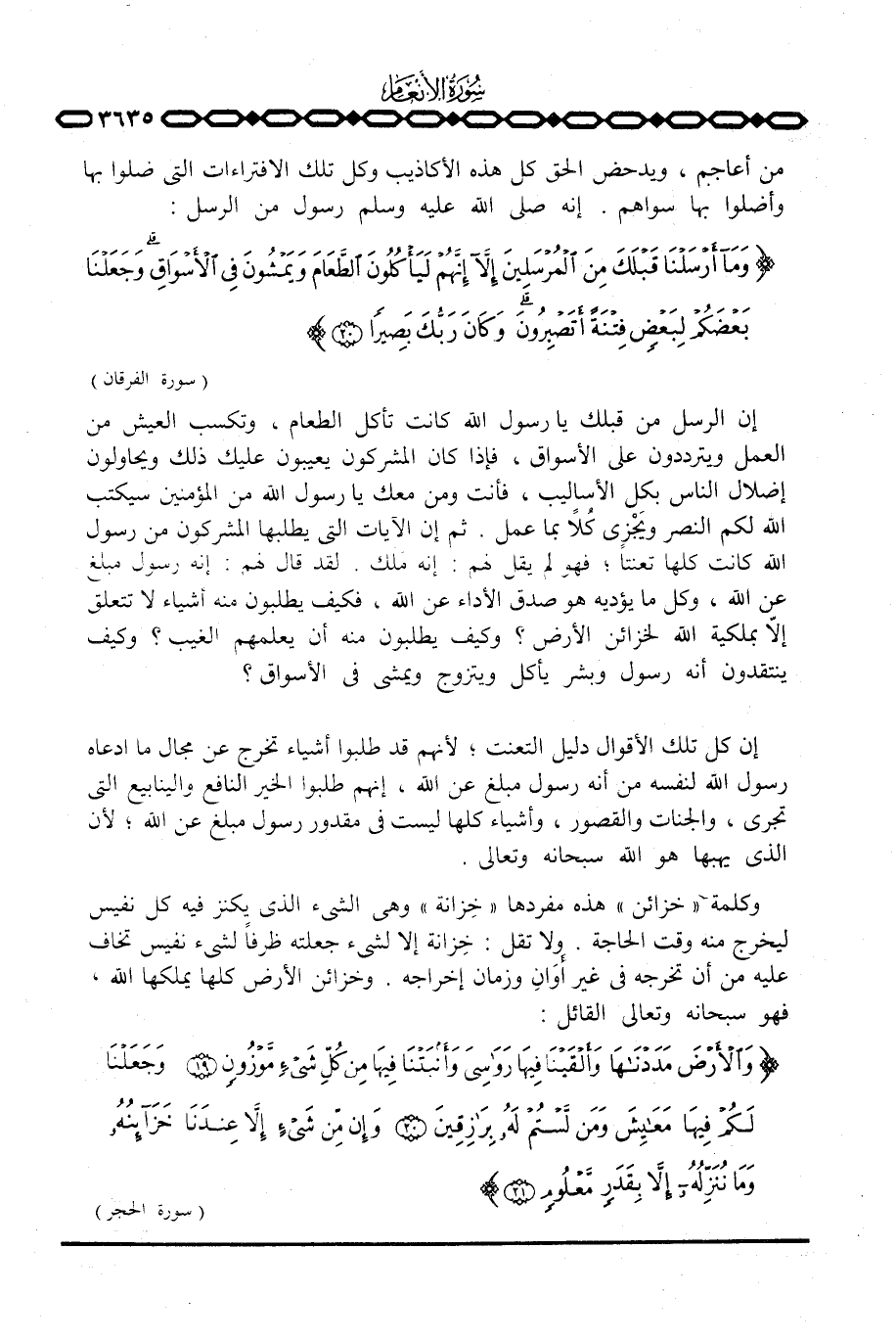 إن الرسل من قبلك يا رسول الله كانت تأكل الطعام، وتكسب العيش من العمل ويترددون على الأسواق، فإذا كان المشركون يعيبون عليك ذلك ويحاولون إضلال الناس بكل الأساليب، فأنت ومن معك يا رسول الله من المؤمنين سيكتب الله لكم النصر ويَجْزِي كُلاً بما عمل. ثم إن الآيات التي يطلبها المشركون من رسول الله كانت كلها تعنتاً؛ فهو لم يقل لهم: إنه ملك. لقد قال لهم: إنه رسول مبلغ عن الله، وكل ما يؤديه هو صدق الأداء عن الله، فكيف يطلبون منه أشياء لا تتعلق إلا بملكية الله لخزائن الأرض؟ وكيف يطلبون منه أن يعلمهم الغيب؟ وكيف ينتقدون أنه رسول وبشر يأكل ويتزوج ويمشي في الأسواق؟