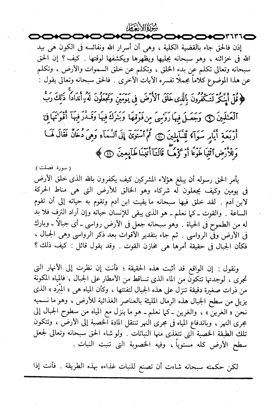ونقول: إن الواقع قد أثبت هذه الحقيقة؛ فأنت إن نظرت إلى الأنهار التي تجري، لوجدتها تتكون من الماء الذي تساقط من الأمطار على الجبال، فالمياه المكونة من ذرات صغيرة دقيقة تنزل على هذه الجبال لتفتتها، وكأن المياه هي «المبُرَد» الذي يزيل من سطح الجبال هذه الرمال المليئة بالعناصر الغذائية للأرض، وهو ما نسميه نحن «الغرين» ، والغرين - كما نعلم - هو ما ينزل مع المياه من سطوح الجبال إلى مجرى النهر، وباندفاع المياه في مجرى النهر تنتقل المادة الخصبة إلى الأرض، وتتكون تلك الطبقة الخصبة التي تتغذى منها النباتات. ولو شاء الحق سبحانه وتعالى لجعل سطح الأرض كله مستوياً، وفيه الخصوبة التي تنبت النبات.