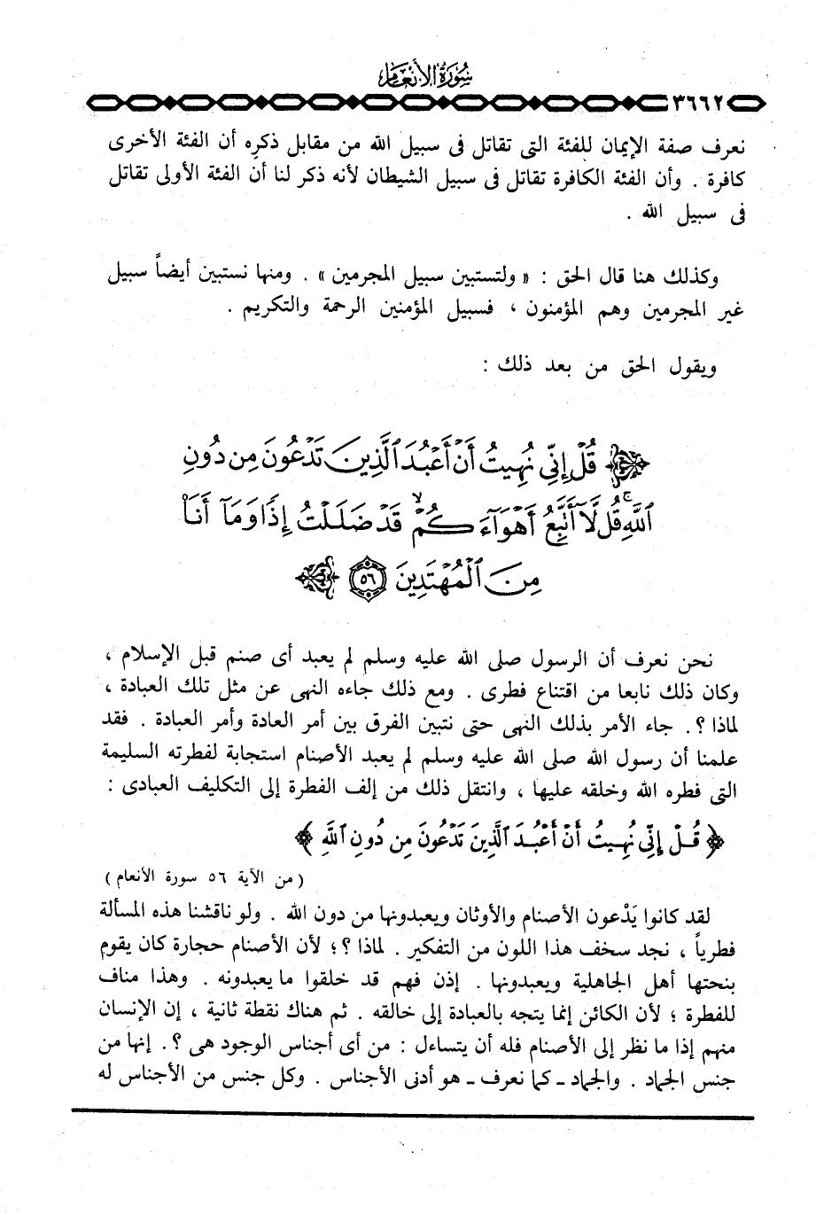 وهكذا نعلم أن أعمال الكافرين أو المشركين يجازيهم الحق سبحانه عليها بعدله في الدنيا بالمال أو الشهرة، ولكنها أعمال لا تفيد في الآخرة. وأعمالهم كمثل البريق اللامع الذي يحدث نتيجة سقوط أشعة الشمس على أرض فسيحة من الصحراء، فيظنه العطشان ماء، وما إن يقترب منه حتى يجده غير نافع له، كذلك أعمال الكافرين أو المشركين يجدونها لا تساوي شيئاً يوم القيامة. والمشرك من هؤلاء يعرف حقيقة شركه يوم القيامة. ولا يجد إلا الواحد الأحد القهار أمامه، لذلك يقول كل واحد منهم: {والله رَبِّنَا مَا كُنَّا مُشْرِكِينَ} .