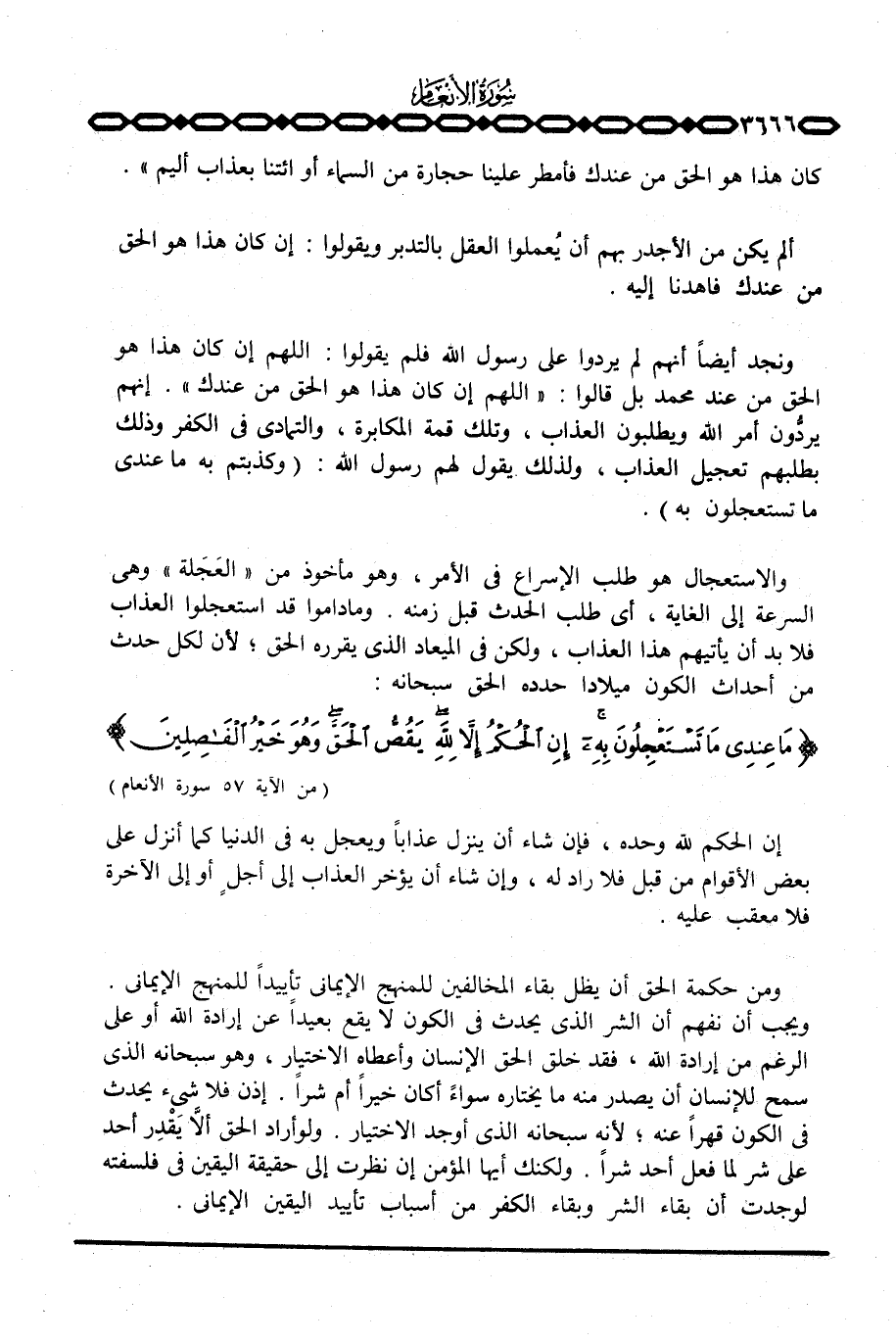ونجد أيضاً أنهم لم يردوا على رسول الله فلم يقولوا: اللهم إن كان هذا هو الحق من عند محمد بل قالوا: {اللهم إِن كَانَ هذا هُوَ الحق مِنْ عِندِكَ} . إنهم يردُّون أمر الله ويطلبون العذاب، وتلك قمة المكابرة، والتمادي في الكفر وذلك بطلبهم تعجيل العذاب، ولذلك يقول لهم رسول الله: {وَكَذَّبْتُم بِهِ مَا عِندِي مَا تَسْتَعْجِلُونَ بِهِ} .