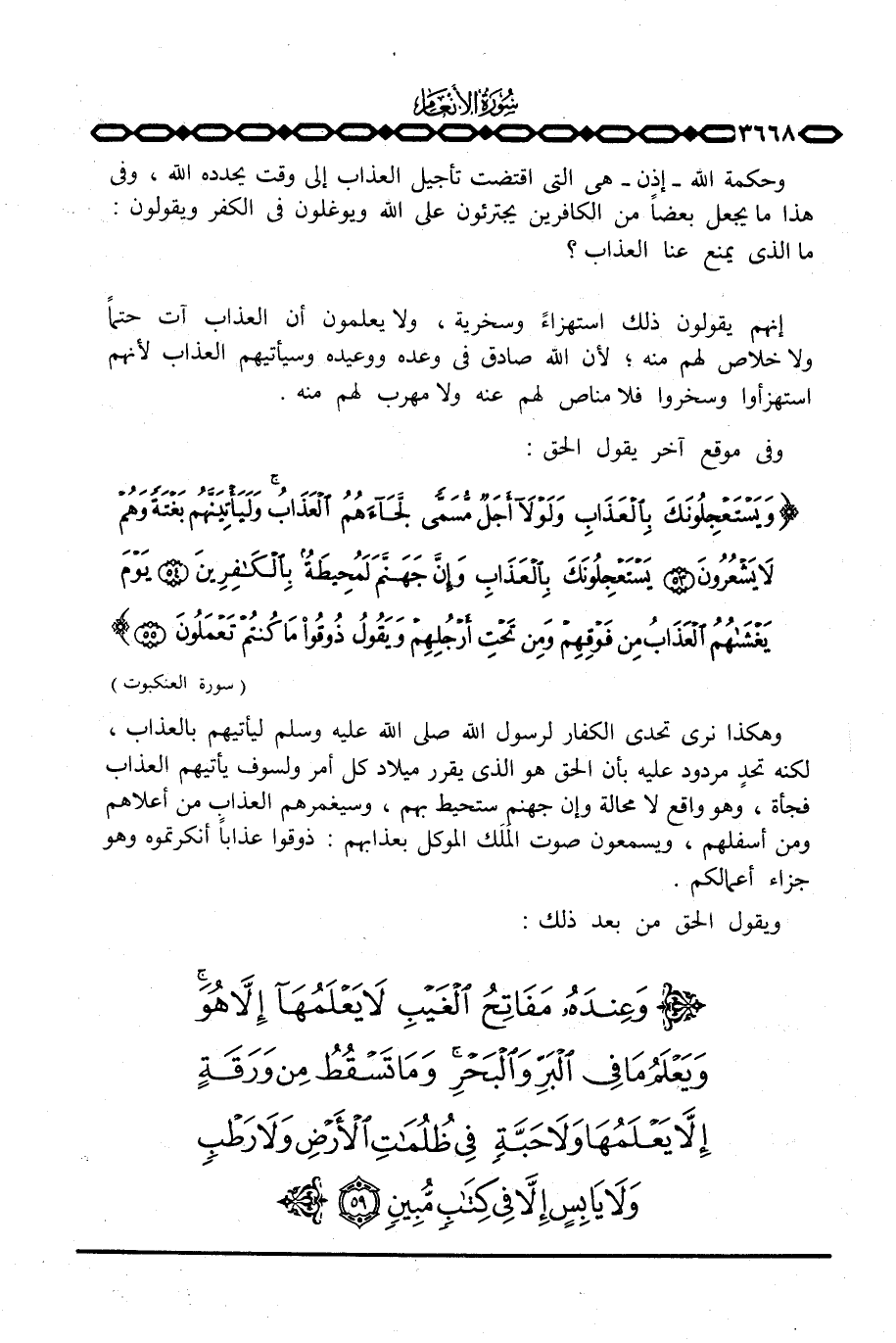 وحكمة الله - إذن - هي التي اقتضت تأجيل العذاب إلى وقت يحدده الله، وفي هذا ما يجعل بعضاً من الكافرين يجترئون على الله ويوغلون في الكفر ويقولون ما الذي يمنع عنا العذاب؟
