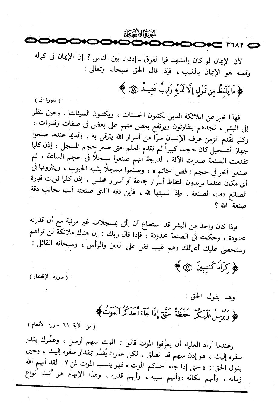 فإذا كان واحد من البشر قد استطاع أن يأتي بمسجلات غير مرئية مع أن قدرته محدودة، وحكمته في الصنعة محدودة، فإذا قال ربك: إن هناك ملائكة لن تراهم وستحصى عليك أعمالك وهم غيب فقل على العين والرأس، وسبحانه القائل: {كِرَاماً كَاتِبِينَ} [الانفطار: 11] .