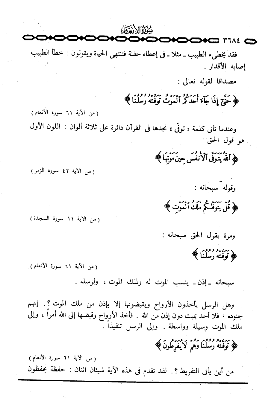 {تَوَفَّتْهُ رُسُلُنَا وَهُمْ لاَ يُفَرِّطُونَ} [الأنعام: 61]