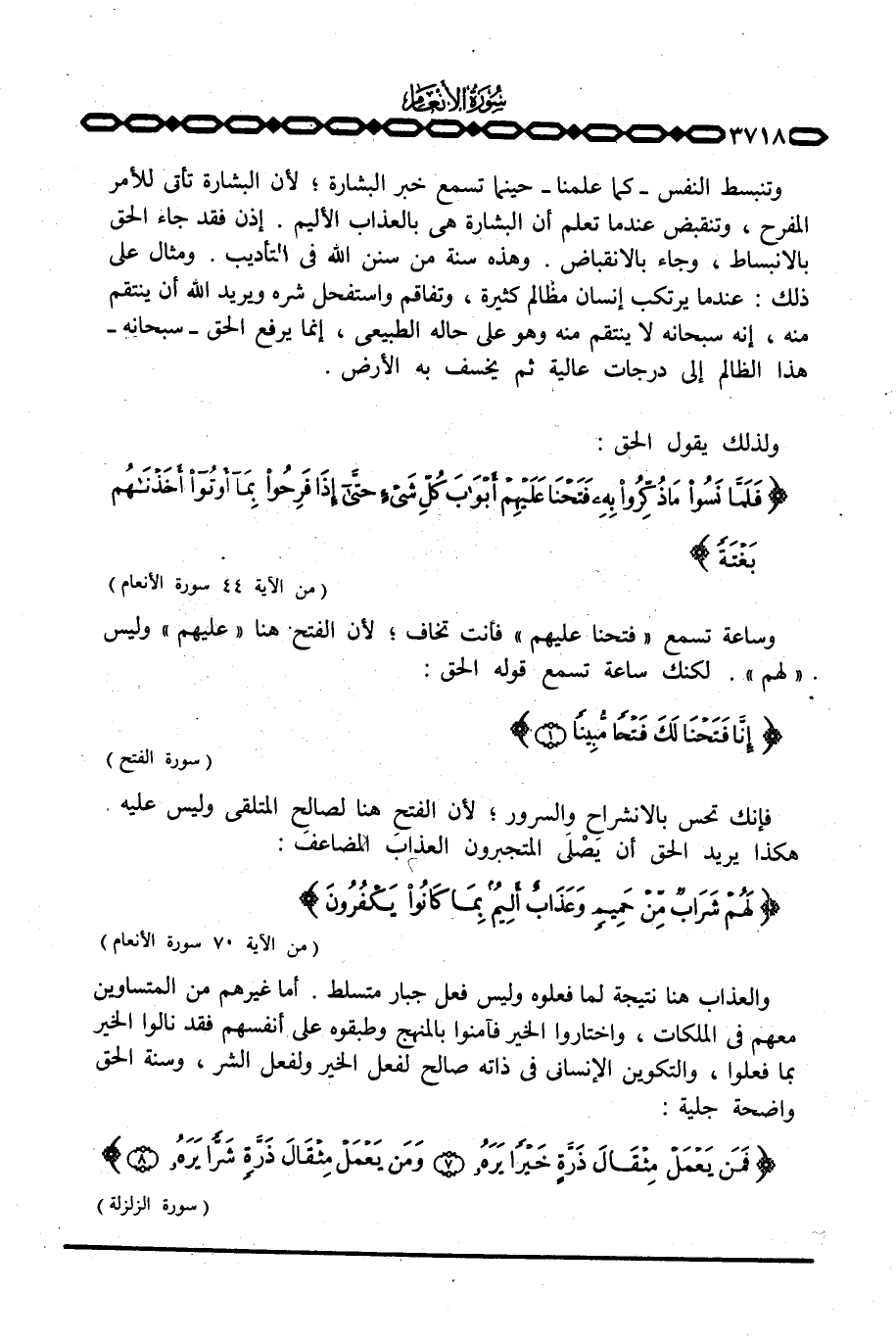 فإنك تحس بالانشراح والسرور؛ لأن الفتح هنا لصالح المتلقي وليس عليه هكذا يريد الحق أن يصْلى المتجبرون العذاب المضاعف: { ... لَهُمْ شَرَابٌ مِّنْ حَمِيمٍ وَعَذَابٌ أَلِيمٌ بِمَا كَانُواْ يَكْفُرُونَ} [الأنعام: 70] .