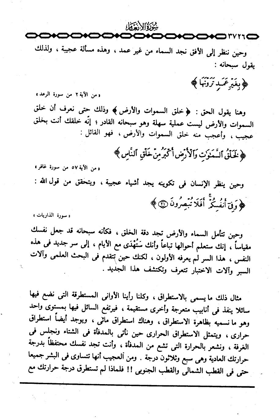 وحين تتأمل السماء والأرض تجد دقة الخلق، فكأنه سبحانه قد جعل نفسك مقياساً، إنك ستعلم أحوالها تباعاً وأنك سَتُهْدَي مع الأيام، إلى سر جديد في هذه النفس، هذا السر لم يعرفه الأولون، لكنك حين تتقدم في البحث العلمي وآلات السبر وآلات الاختبار تتعرف وتكتشف هذا الجديد.