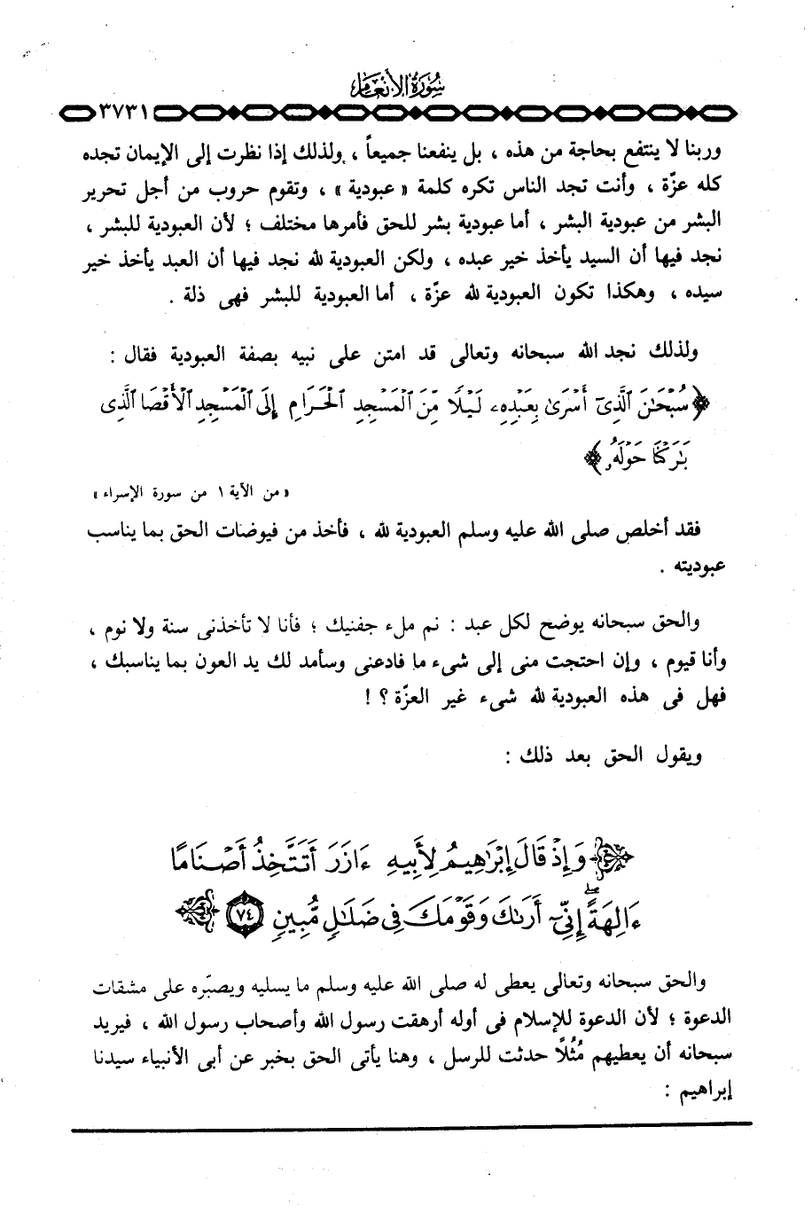 وربنا لا ينتفع بحاجة من هذه، بل ينفعنا جميعاً، ولذلك إذا نظرت إلى الإيمان تجده كله عزّة، وأنت تجد الناس تكره كلمة «عبودية» ، وتقوم حروب من أجل تحرير البشر من عبودية البشر، أما عبودية بشر للحق فأمرها مختلف؛ لأن العبودية للبشر، نجد فيها أن السيد يأخذ خير عبده، ولكن العبودية لله نجد فيها أن العبد يأخذ خير سيده، وهكذا تكون العبودية لله عزّة، أما العبودية للبشر فهي ذلة.