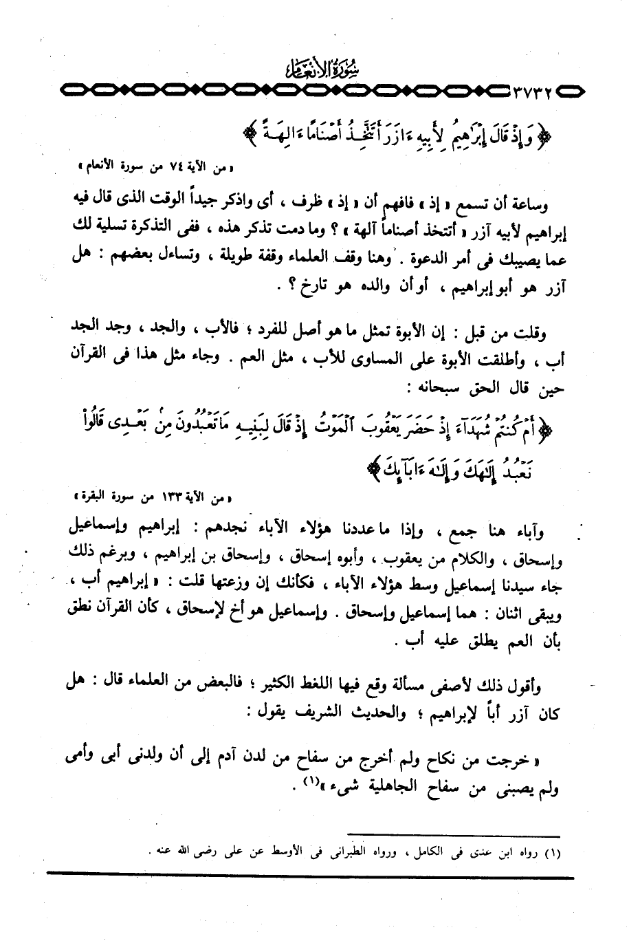 وأقول ذلك لأضفي مسألة وقع فيها اللغط الكثير؛ فالبعض من العلماء قال: هل كان آزر أباً لإبراهيم؛ والحديث الشريف يقول: