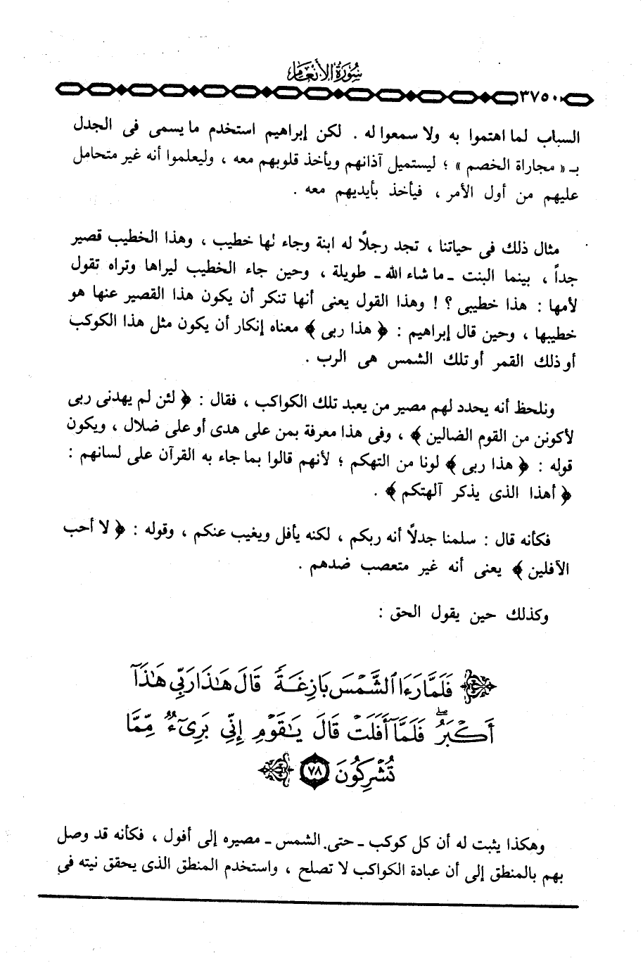 وهكذا يثبت له أن كل كوكب - حتى الشمس - مصيره إلى أفول، فكأنه قد وصل بهم بالمنطق إلى أن عبادة الكواكب لا تصلح، واستخدم المنطق الذي يحقق نيته في