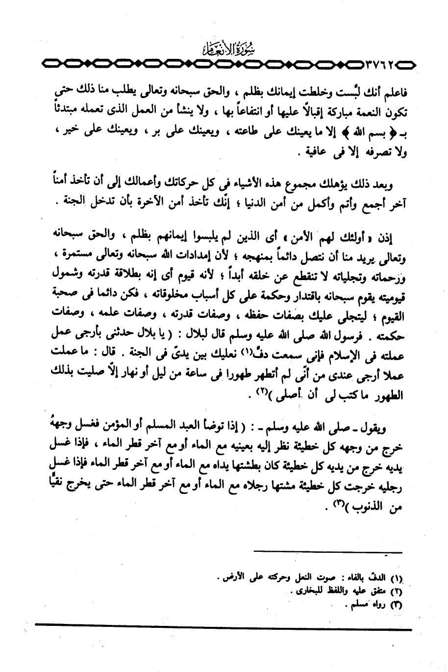 المسألة فاعلم أنك لبَّست وخلطت إيمانك بظلم، والحق سبحانه وتعالى منا ذلك حتى تكون النعمة مباركة إقبالاً عليها أو انتفاعاً بها، ولا ينشأ من العمل الذي تعمله مبتدئاً ب «بسم الله» إلا ما يعينك على طاعته، ويعينك على بر، ويعينك على خير، ولا تصرفه إلا في عافية.