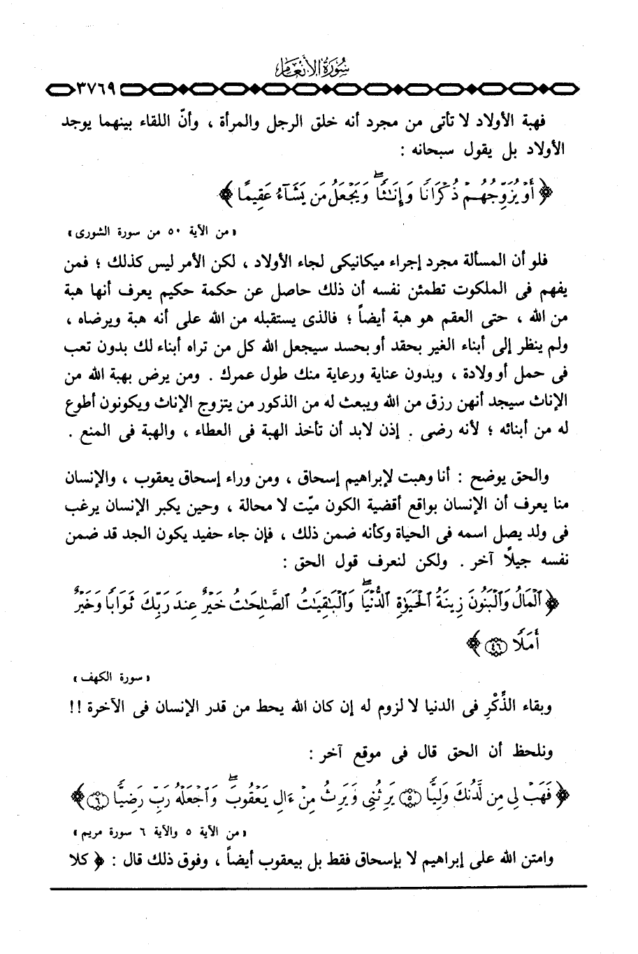 فهبة الأولاد لا تأتي من مجرد أنه خلق الرجل والمرأة، وأنّ اللقاء بينهما يوجد الأولاد بل يقول سبحانه: {أَوْ يُزَوِّجُهُمْ ذُكْرَاناً وَإِنَاثاً وَيَجْعَلُ مَن يَشَآءُ عَقِيماً} [الشورى: 50] .