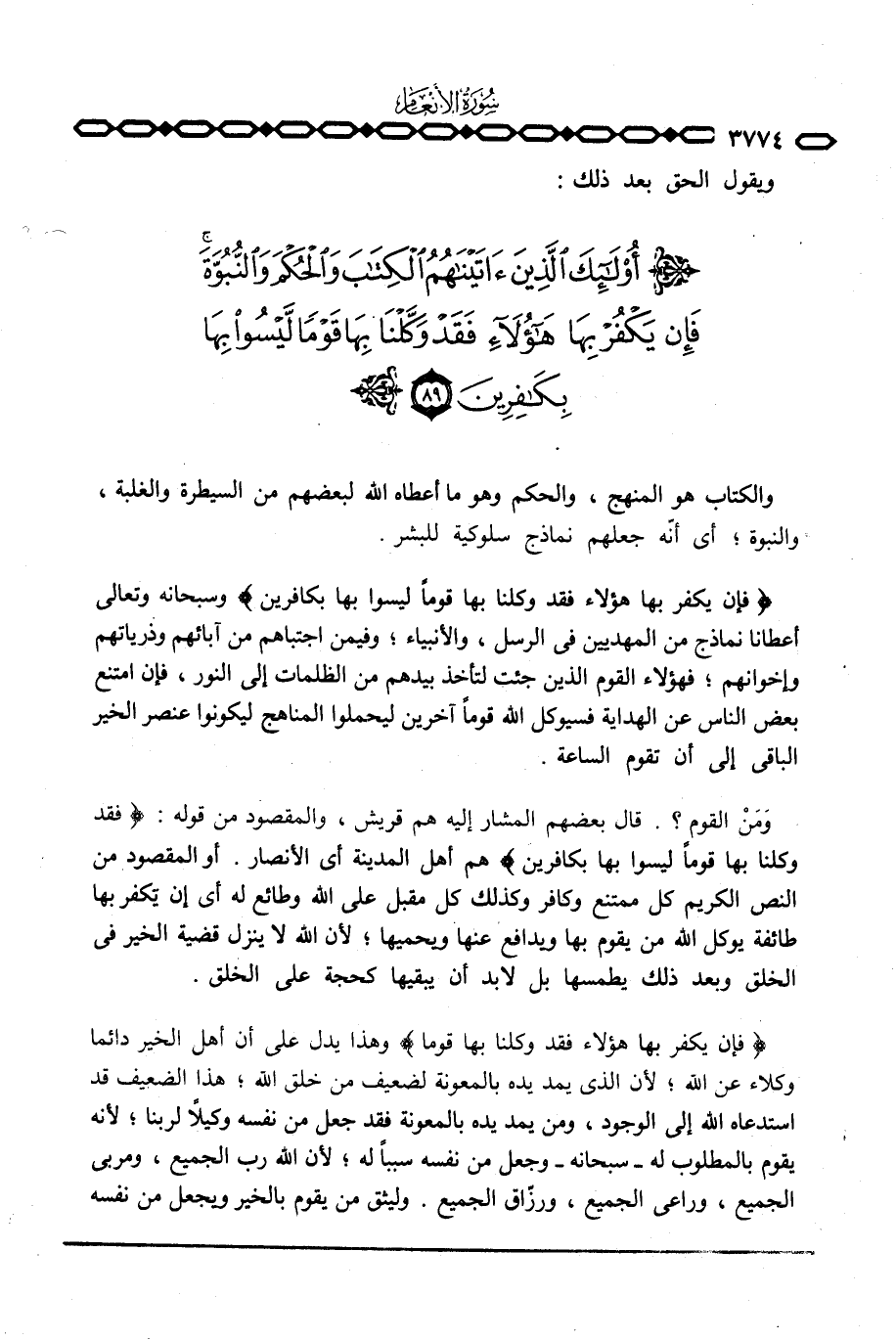 {فَإِن يَكْفُرْ بِهَا هؤلاء فَقَدْ وَكَّلْنَا بِهَا قَوْماً لَّيْسُواْ بِهَا بِكَافِرِينَ} وسبحانه وتعالى أعطانا نماذج من المهديين في الرسل، والأنبياء؛ وفيمن اجتباهم من آبائهم وذرياتهم وإخوانهم؛ فهؤلاء القوم الذي جئت لتأخذ بيدهم من الظلمات إلى النور، فإن امتنع بعض الناس عن الهداية فسيوكل الله قوماً آخرين ليحملوا المناهج ليكونوا عنصر الخير الباقي إلى أن تقوم الساعة.