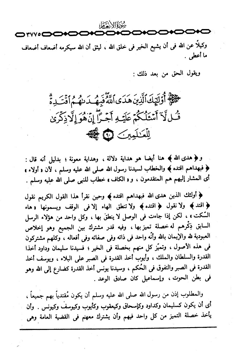 و «هدى الله» هنا أيضا هو هداية دلالة، وهداية معونة؛ بدليل أنه قال: {فَبِهُدَاهُمُ اقتده} والخطاب لسيدنا رسول الله صَلَّى اللَّهُ عَلَيْهِ وَسَلَّم َ، لأن «أولاء» أي المشار إليهم هم المتقدمون، و «الكاف» خطاب للنبي صَلَّى اللَّهُ عَلَيْهِ وَسَلَّم َ.