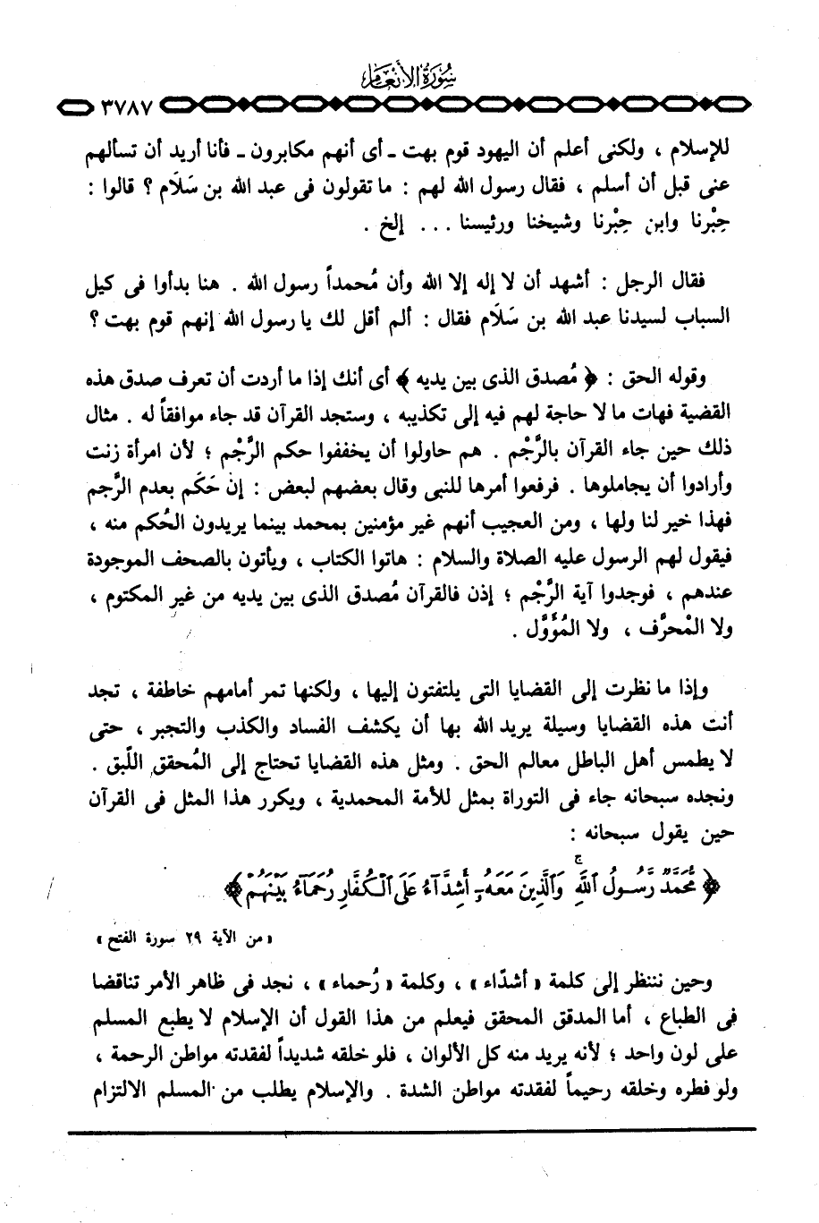 فقال الرجل: أشهد أن لا إله إلا الله وأن مُحمداً رسول الله. هنا بدأوا في كيل السباب لسيدنا عبد الله بن سَلاَم فقال: ألم أقل لك يا رسول الله إنهم قوم بهت؟