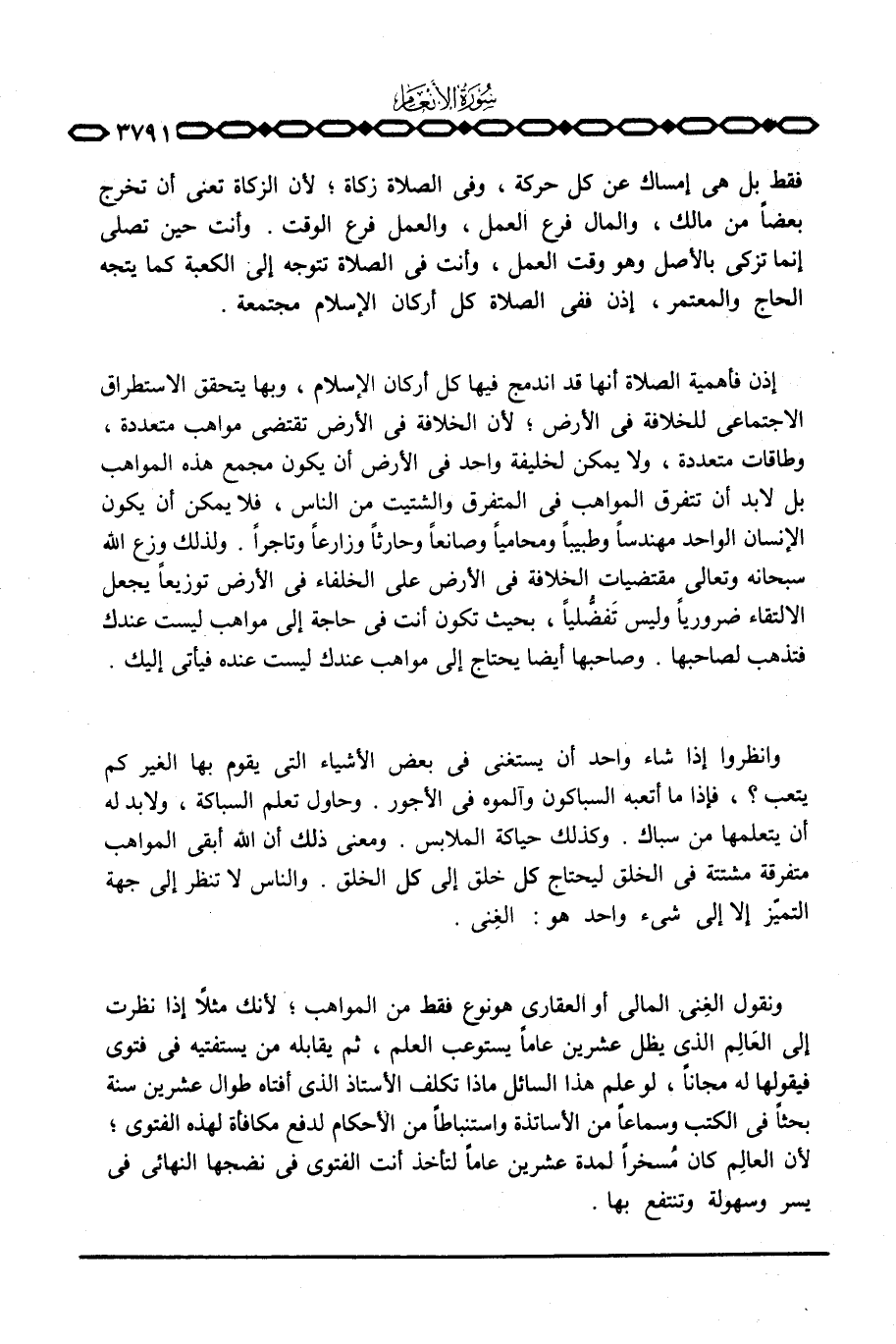 وانظروا إذا شاء واحد أن يستغني في بعض الأشياء التي يقوم بها الغير كم يتعب؟ ، فإذا ما أتعبه السباكون وآلموه في الأجور. وحاول تعلم السباكة، ولا بد له أن يتعلمها من سباك. وكذلك حياكة الملابس. ومعنى ذلك أن الله أبقى المواهب متفرقة مشتتة في الخلق ليحتاج كل خلق إلى كل الخلق. والناس لا تنظر إلى جهة التميّز إلا إلى شيء واحد هو: الغِنى.