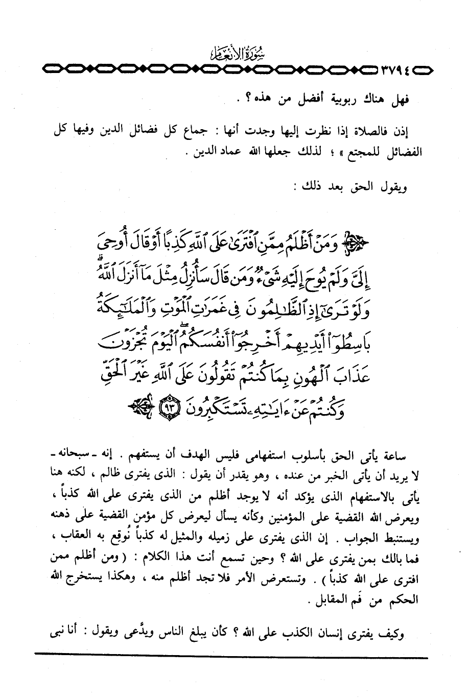 ساعة يأتي الحق بأسلوب استفهامي فليس الهدف أن يستفهم. إنه - سبحانه - لا يريد ان يأتي الخبر من عنده، وهو يقدر أن يقول: الذي يفتري ظالم، لكنه هنا يأتي بالاستفهام الذي يؤكد أنه لا يوجد أظلم من الذي يفتري على الله كذباً، ويعرض الله القضية على المؤمنين وكأنه يسأل ليعوض كل مؤمن القضية على ذهنه ويستنبط الجواب. إن الذي يفتري على زميله والمثيل له كذباً نُوقِع به العقاب، فما بالك بمن يفتري على الله؟ وحين تسمع أنت هذا الكلام: {وَمَنْ أَظْلَمُ مِمَّنِ افترى عَلَى الله كَذِباً} . وتستعرض الأمر فلا تجد أظلم منه، وهكذا يستخرج الله الحكم من فَم المقابل.