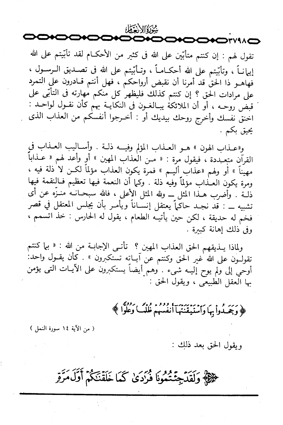 ولماذا يذيقهم الحق العذاب المهين؟ تأتي الإجابة من الله: {بِمَا كُنتُمْ تَقُولُونَ عَلَى الله غَيْرَ الحق وَكُنْتُمْ عَنْ آيَاتِهِ تَسْتَكْبِرُونَ} . كأن يقول واحد: أوحي إلي ولم يوح إليه شيء. وهم أيضاً يستكبرون على الآيات التي يؤمن بها العقل الطبيعي، ويقول الحق: {وَجَحَدُواْ بِهَا واستيقنتهآ أَنفُسُهُمْ ظُلْماً وَعُلُوّاً} [النمل: 14] .
