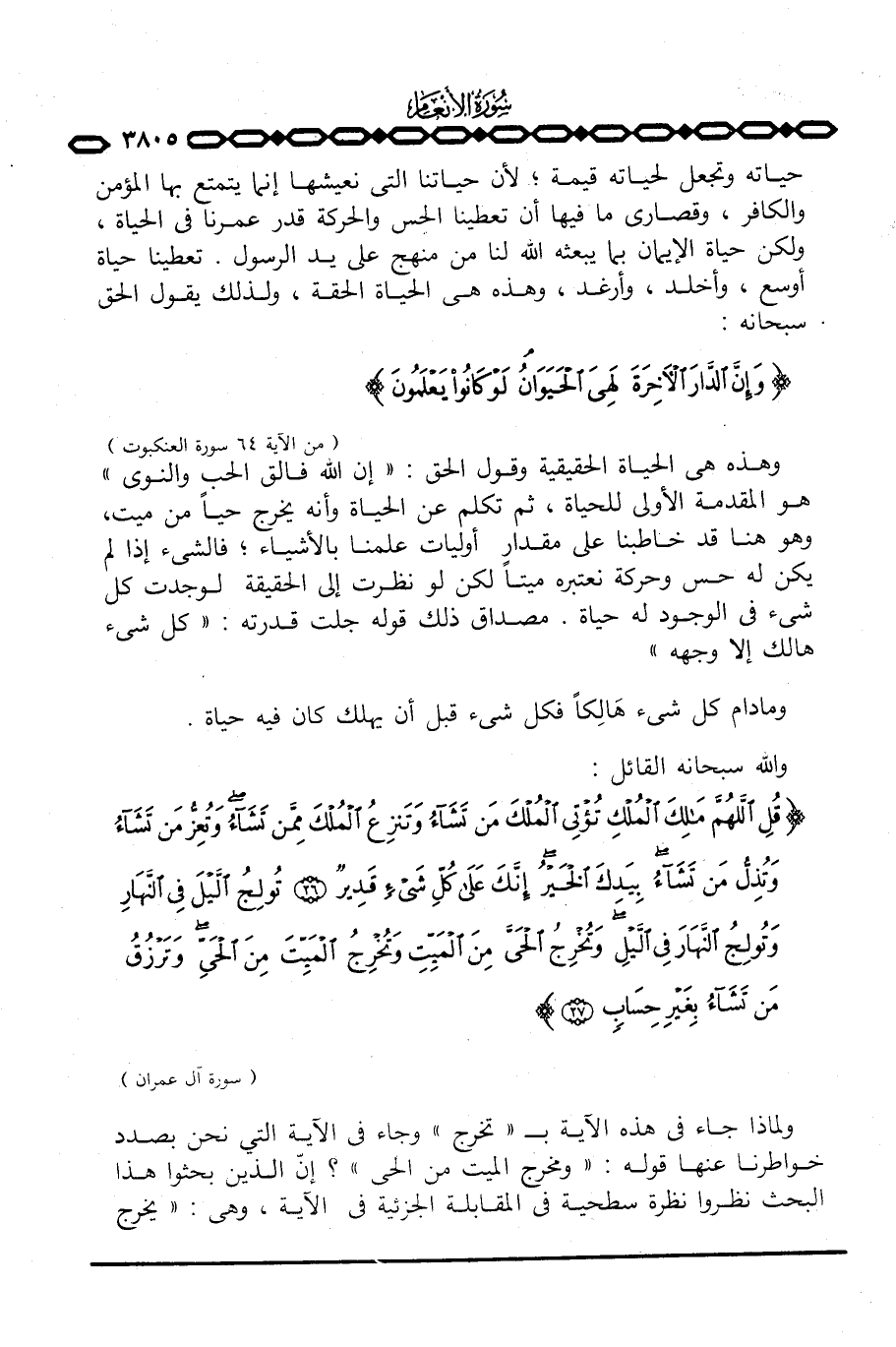 حياته وتجعل لحياته قيمة؛ لأن حياتنا الني نعيشها إنما يتمتع بها المؤمن والكافر، وقصارى ما فيها أن تعطينا الحس والحركة قدر عمرنا في الحياة، ولكن حياة الإيمان بما يبعثه الله لنا من منهج على يد الرسول. تعطينا حياة أوسع، وأخلد، وأرغد، وهذه هي الحياة الحقة، ولذلك يقول الحق سبحانه: {وَإِنَّ الدار الآخرة لَهِيَ الحيوان لَوْ كَانُواْ يَعْلَمُونَ} [العنكبوت: 64] .