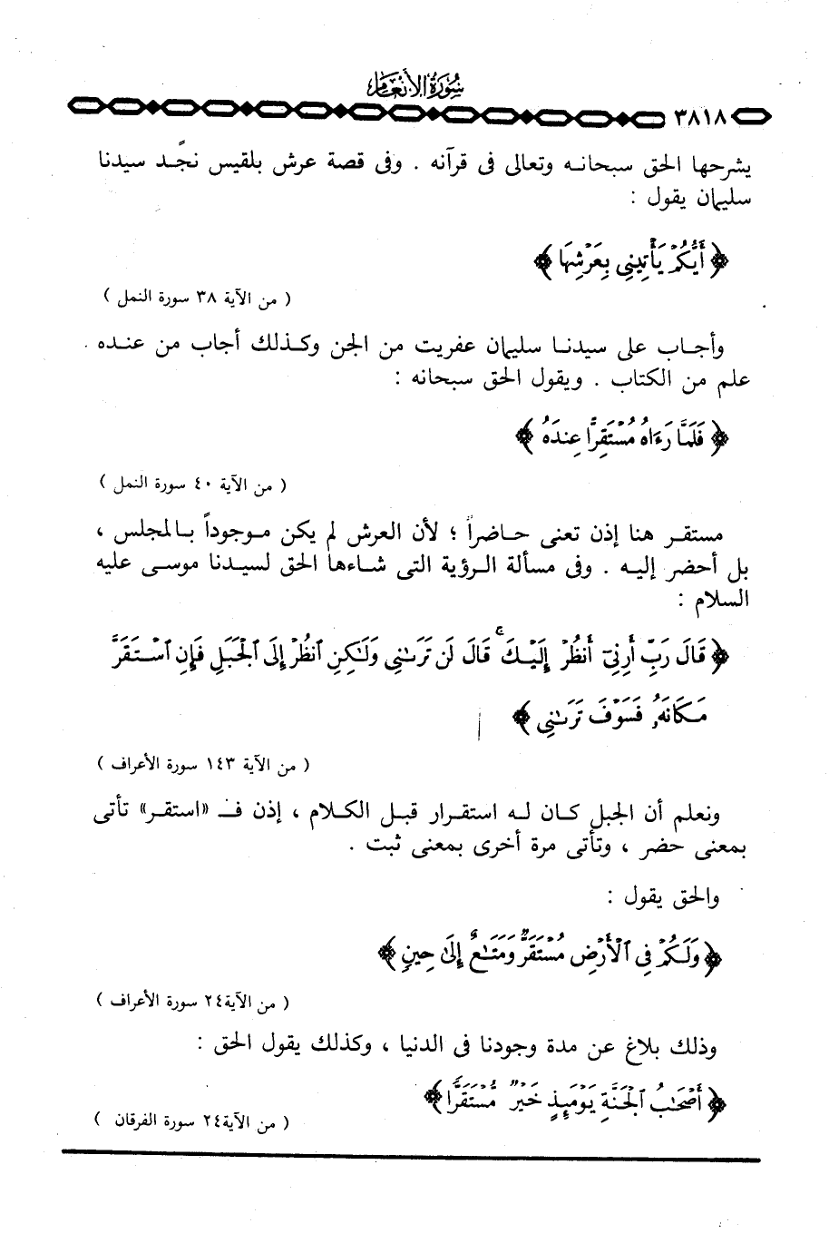 مستقر هنا إذن تعني حاضراً؛ لأن العرش لم يكن موجوداً بالمجلس بل أحضر إليه. وفي مسألة الرؤية التي شاءها الحق لسيدنا موسى عليه السلام: {قَالَ رَبِّ أرني أَنظُرْ إِلَيْكَ قَالَ لَن تَرَانِي ولكن انْظُرْ إِلَى الْجَبَلِ فَإِنِ اسْتَقَرَّ مَكَانَهُ فَسَوْفَ تَرَانِي} [الأعراف: 143] .