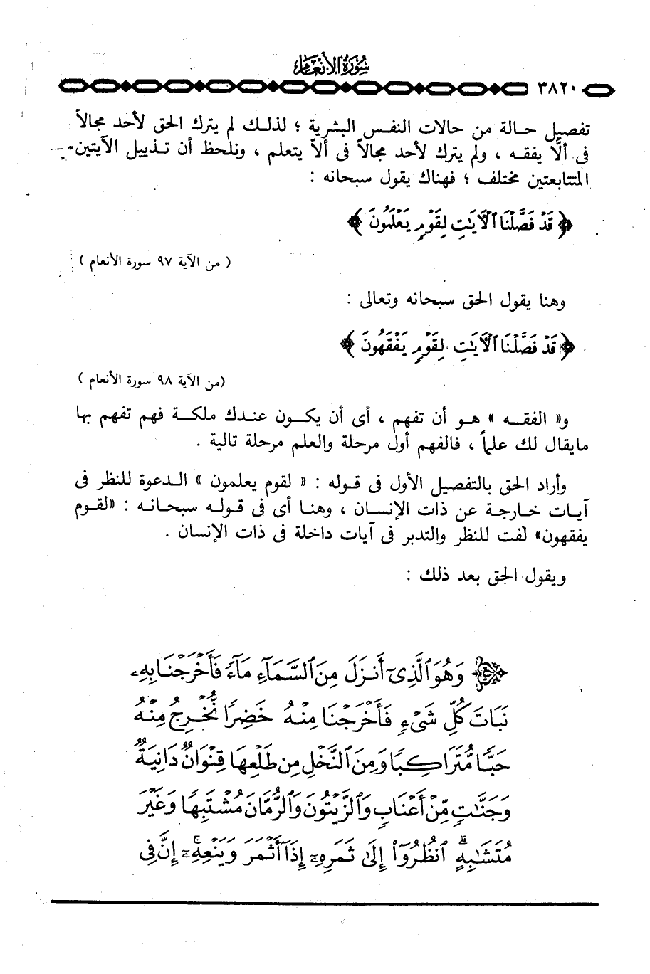 تفصيل حالة من حالات النفس البشرية؛ لذلك لم يترك الحق لأحد مجالاً في ألا يفقه، ولم يترك لأحد مجالاً في ألا يتعلم، ونلحظ أن تذييل الآيتين المتتابعتين مختلف؛ فهناك يقول سبحانه: