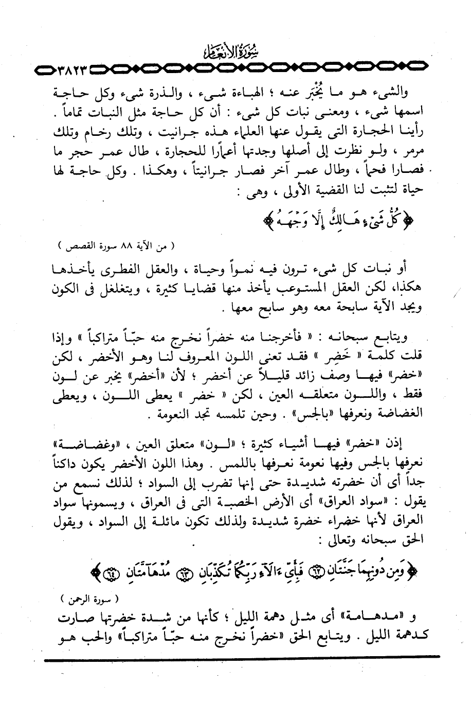 أو نبات كل شيء ترون فيه نمواً وحياة، والعقل الفطري يأخذها هكذا، لكن العقل المستوعب يأخذ منها قضايا كثيرة، ويتغلغل في الكون ويجد الآية سابحة معه وهو سابح معها.