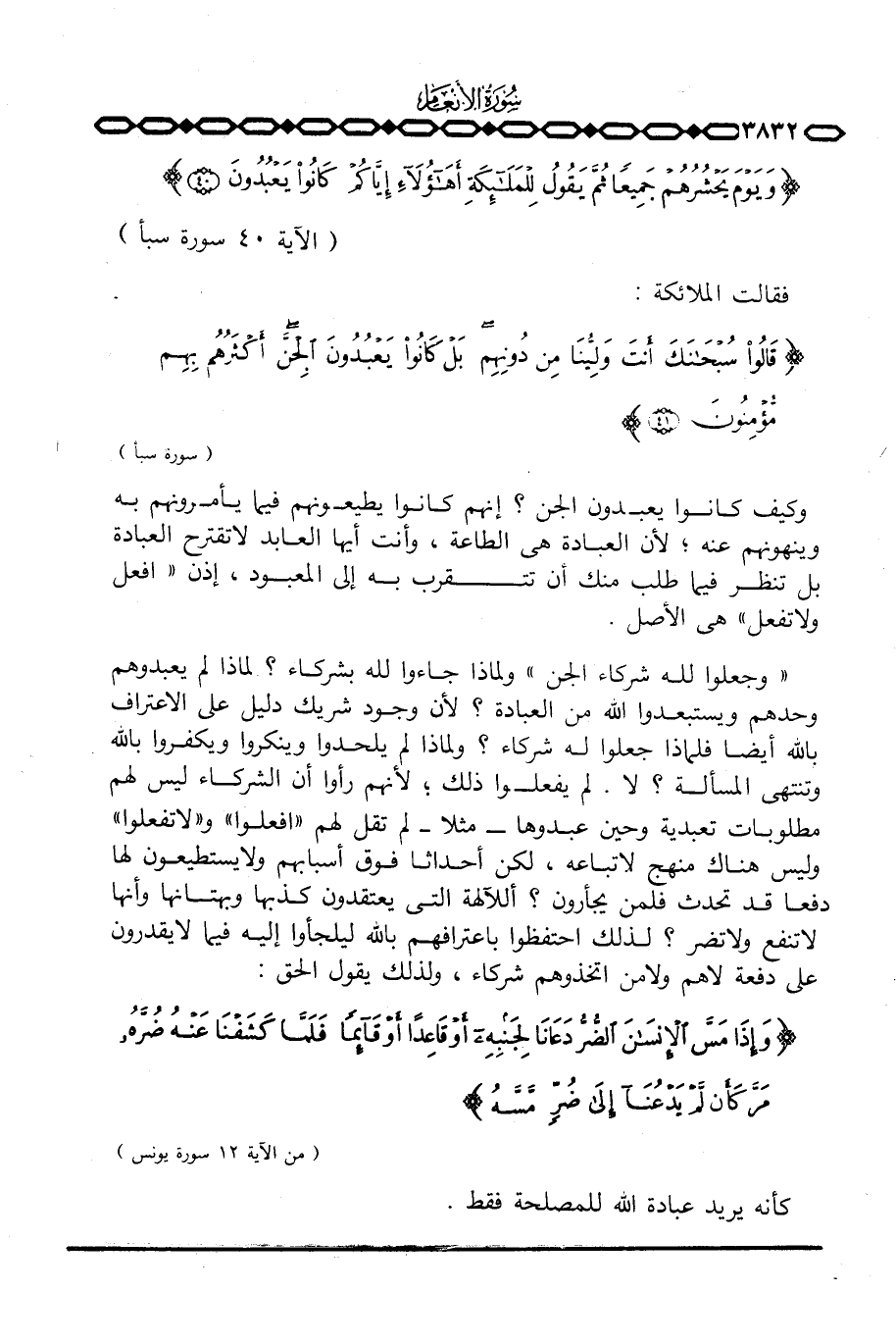 وكيف كانوا يعبدون الجن؟ إنهم كانوا يطيعونهم فيما يأمرونهم به وينهونهم عنه؛ لأن العبادة هي الطاعة، وأنت أيها العباد لا تقترح العبادة بل تنظر فيما طلب منك أن تتقرب به إلى المعبود، إذن «افعل ولا تفعل» هي الأصل.