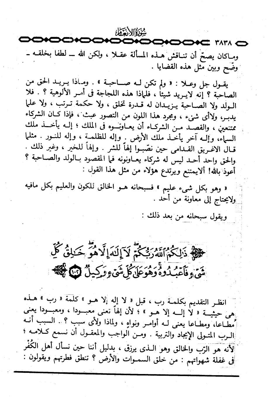 انظر التقديم بكلمة رب، قبل «لا إله إلا هو» كلمة «رب» هذه هي حيثية «لا إله إلا هو» ؛ لأن إلهاً تعني معبودا، ومعبودا يعني مُطاعا، ومطاعا يعني له أوامر ونواهٍ، ولماذا ولأي سبب؟ . السبب أنه الرب المتولي الإيجاد والتربية. ومن الواجب والمعقول أن نسمع كلامه؛ لأنه هو الرّب والخالق وهو الذي يرزق، بدليل أننا حين نسأل أهل الكُفْر في غفلة شهواتهم: من خلق السموات والأرض؟ تنطق فطرتهم ويقولون:
